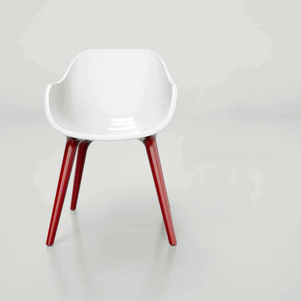 As pernas fundidas na concha e as suas linhas suaves, realçadas por múltiplas combinações de cores, dão vida a uma cadeira versátil, camaleónica e intemporal.