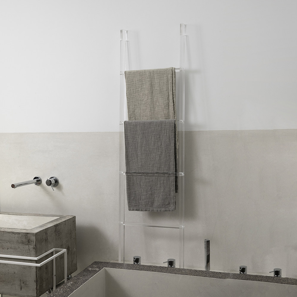 Escada toalha de banho em cristal acrílico transparente, 2 tamanhos fabricado na Itália.