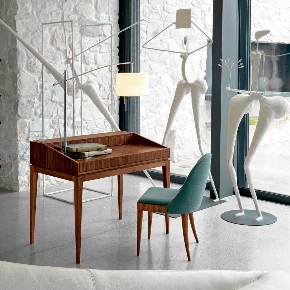 O resultado é um estilo refinado e original , a mais alta expressão da excelência Made in Italy , adequada para múltiplos contextos de decoração. A paixão e o compromisso diário da empresa no processamento de madeira maciça contribuem para dar charme e elegância a cada peça de mobiliário da coleção. Coleções para o dia e para a noite de personalidade forte, caracterizada por um clima contemporâneo irresistível.