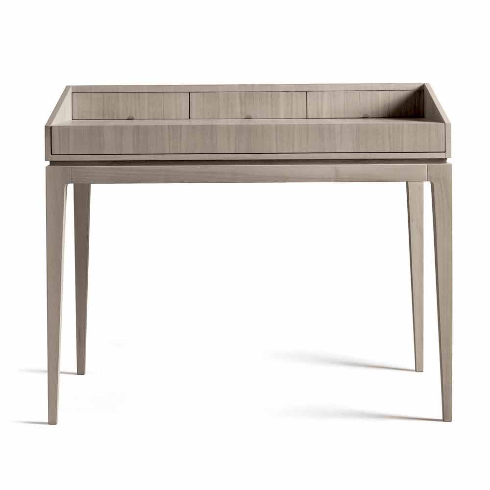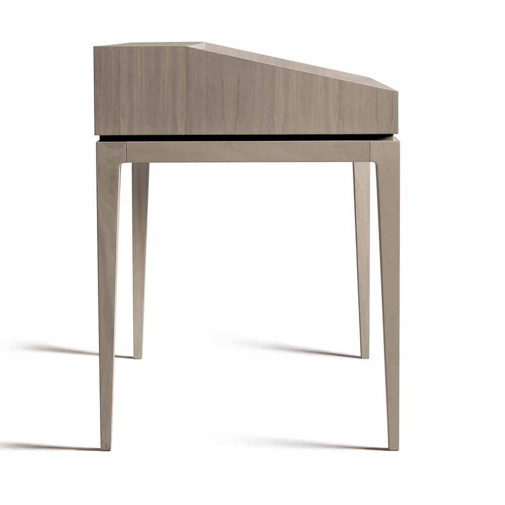 Elegante secretária em madeira de nogueira natural ou nogueira natural em tons de cinza, que esconde em cada acabamento a expressão estilística da empresa e o domínio com que este móvel e design são feitos.