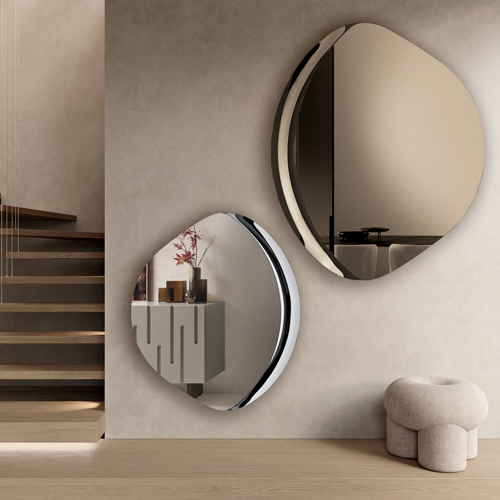 Um espelho elegante e com formato diferenciado, projetado para valorizar com estilo diversos ambientes da casa, da entrada à sala de estar e ao quarto . Seu formato sinuoso e contemporâneo o torna um elemento decorativo por excelência, capaz de enriquecer qualquer espaço com personalidade e sofisticação.