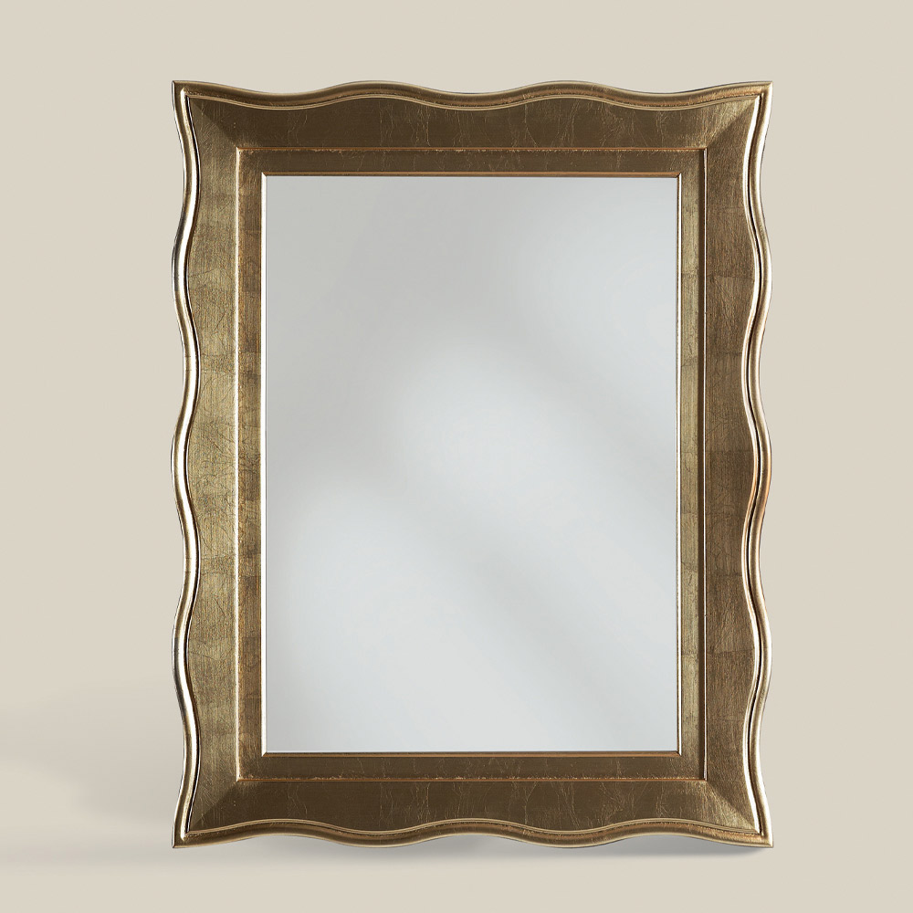 Espelho elegante de estilo clássico feito com moldura em folha de ouro . Um complemento único e refinado, totalmente feito na Itália por mestres artesãos habilidosos , mestres da arte que finalizam cada complemento com sabedoria e gosto pela elegância. A produção é realizada com materiais nobres , realizando o trabalho manual com o máximo cuidado e profissionalismo que distingue os produtos Made in Italy .