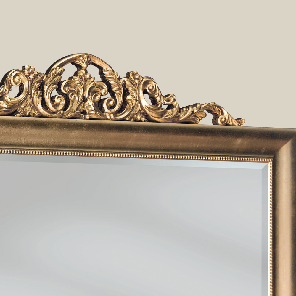 Elegante espelho retangular com moldura de madeira decorado com folha de ouro com decoração naturalista. Graças ao seu estilo clássico , este espelho é ideal para dar a qualquer ambiente um toque elegante e luxuoso .
