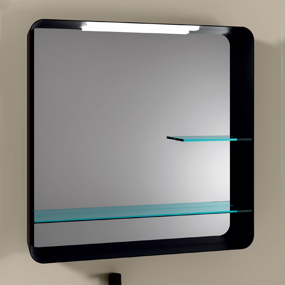 Este espelho quadrado com bordas arredondadas é um verdadeiro triunfo do design moderno. A sua estrutura metálica é uma ousada afirmação de elegância e estilo , enquanto as prateleiras de vidro acrescentam um toque de funcionalidade sofisticada .