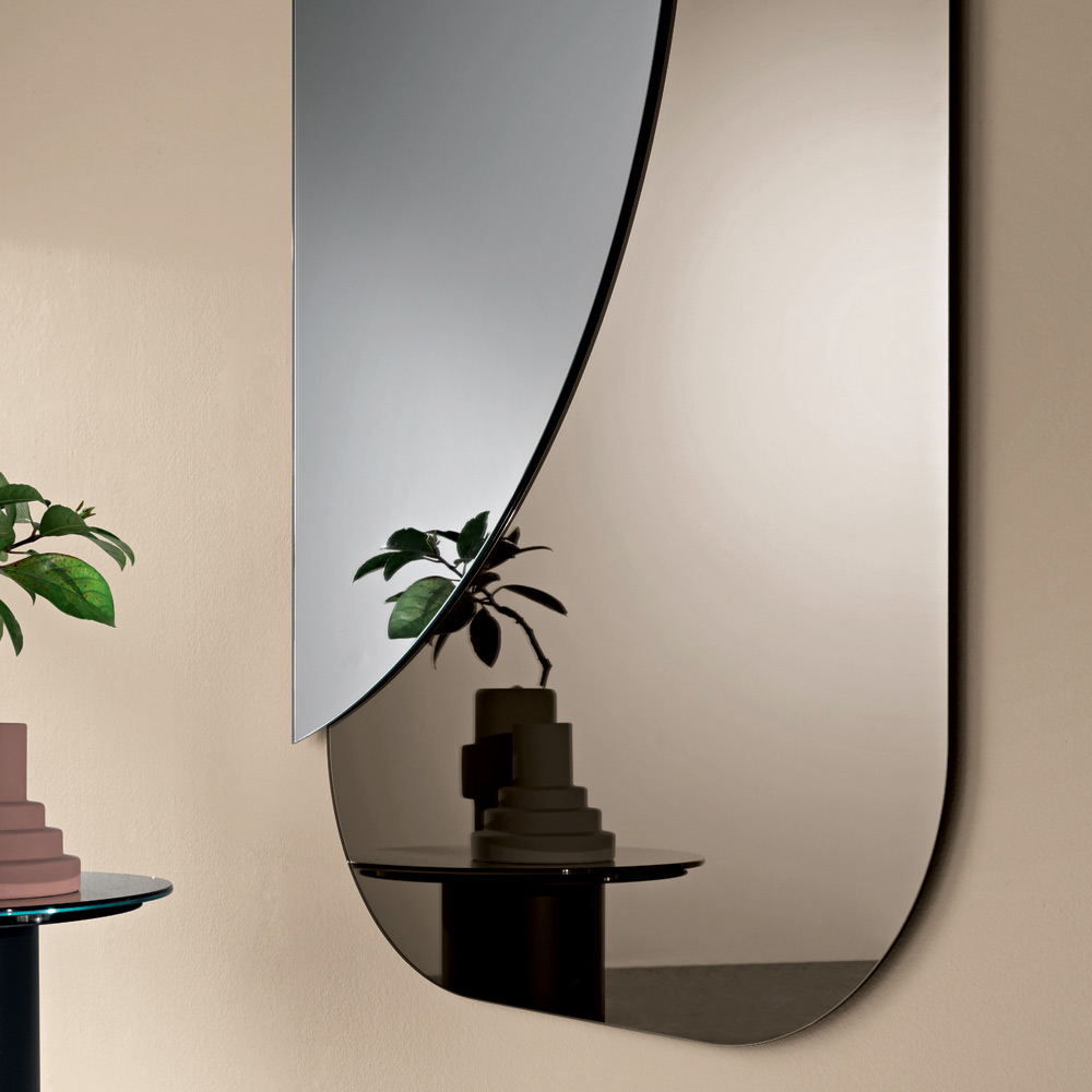 Um elegante espelho de formato diferenciado, com design italiano , ideal para embelezar com estilo espaços como a entrada , a sala de estar ou o quarto . Seu design moderno se destaca pela refinada interação de formas sobrepostas, que conferem profundidade e personalidade à parede.