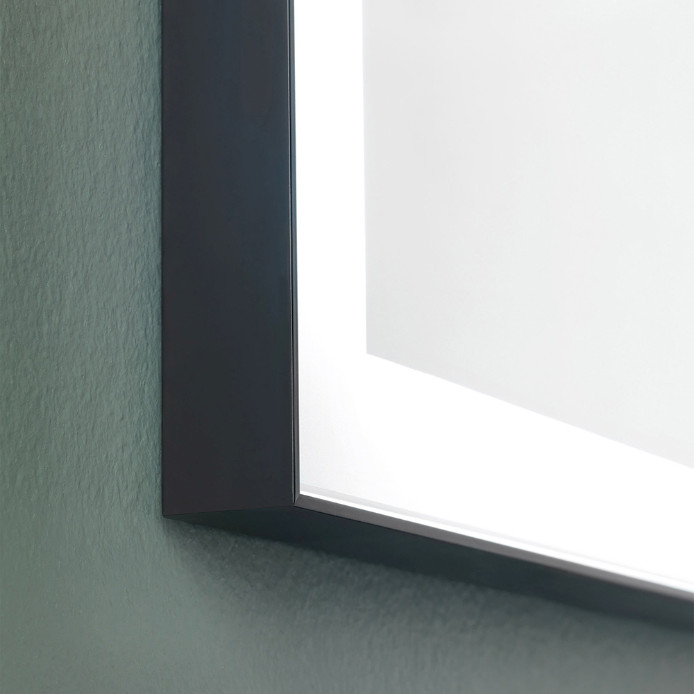 moldura de metal pintado de preto mate com 3 cm de espessura. A funcionalidade é completada com a