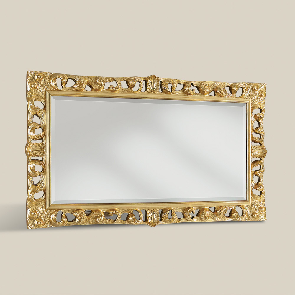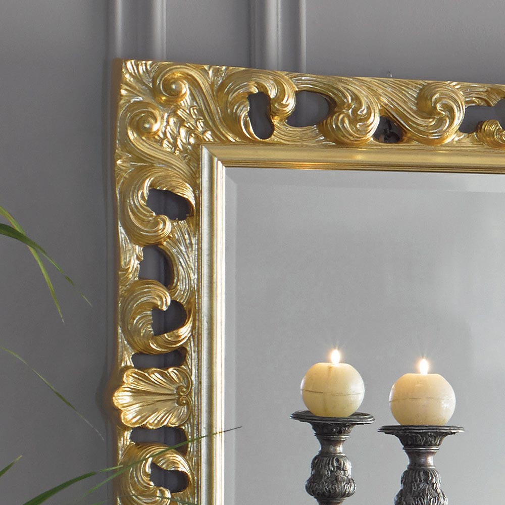 Espelho retangular em madeira de folha de ouro clássica Made in Italy.