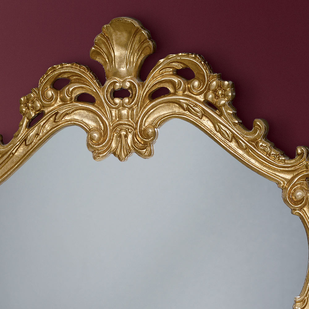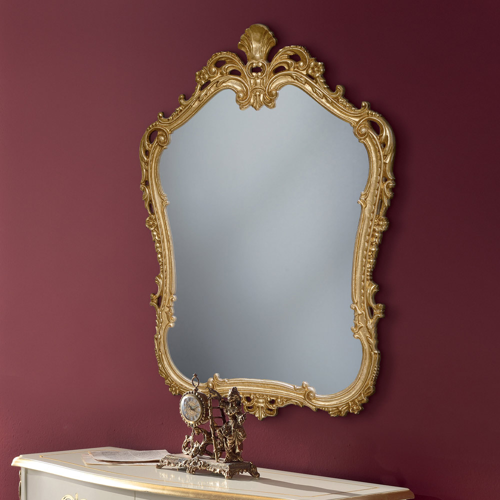 Espelho em forma com moldura de madeira perfurada e decorado com folha de ouro estilo clássico , este espelho é ideal para dar a qualquer ambiente um toque elegante e luxuoso .