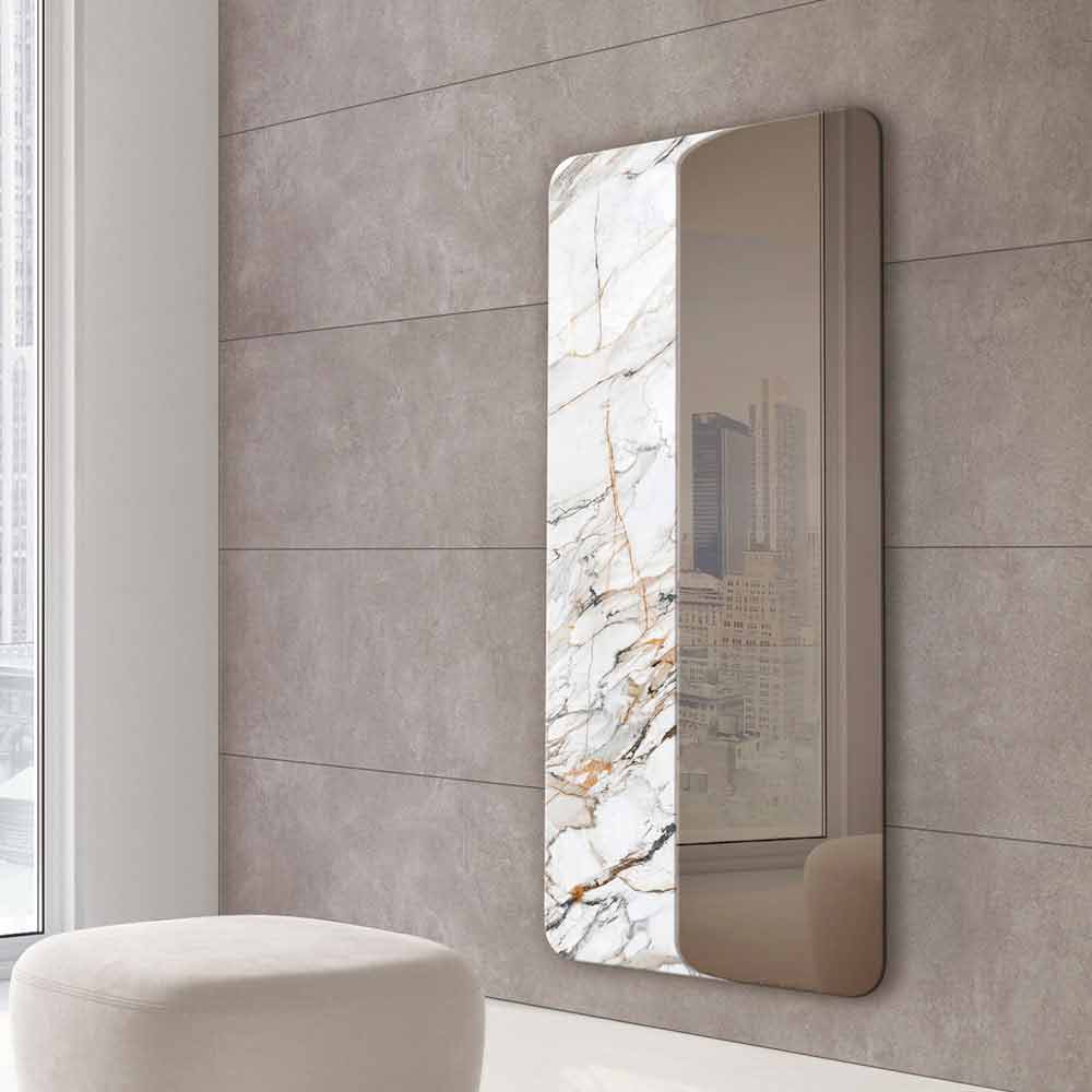 Espelho de parede com aplicação de cerâmica ou madeira, nobre artigo made in Italy.