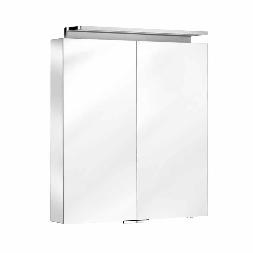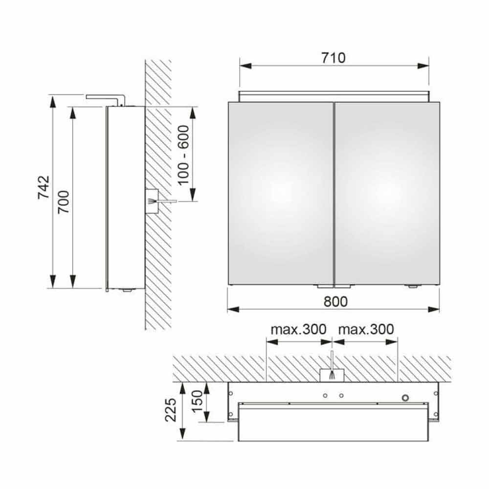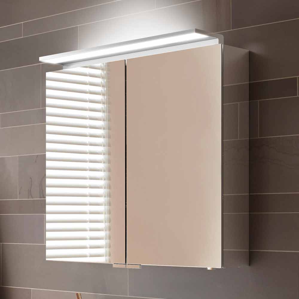 Espelho porta-contentores com 2 portas de batente espelhadas (também internas) e retrovisores laterais com iluminação LED.