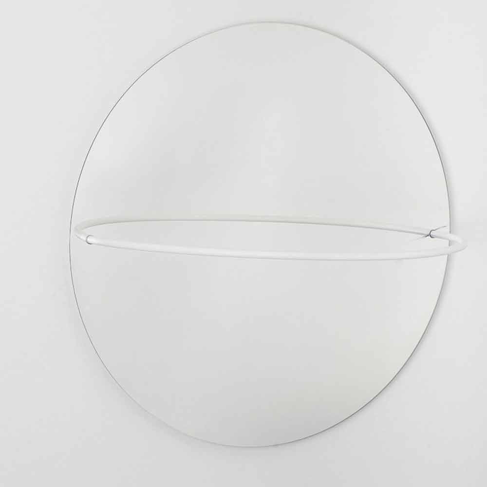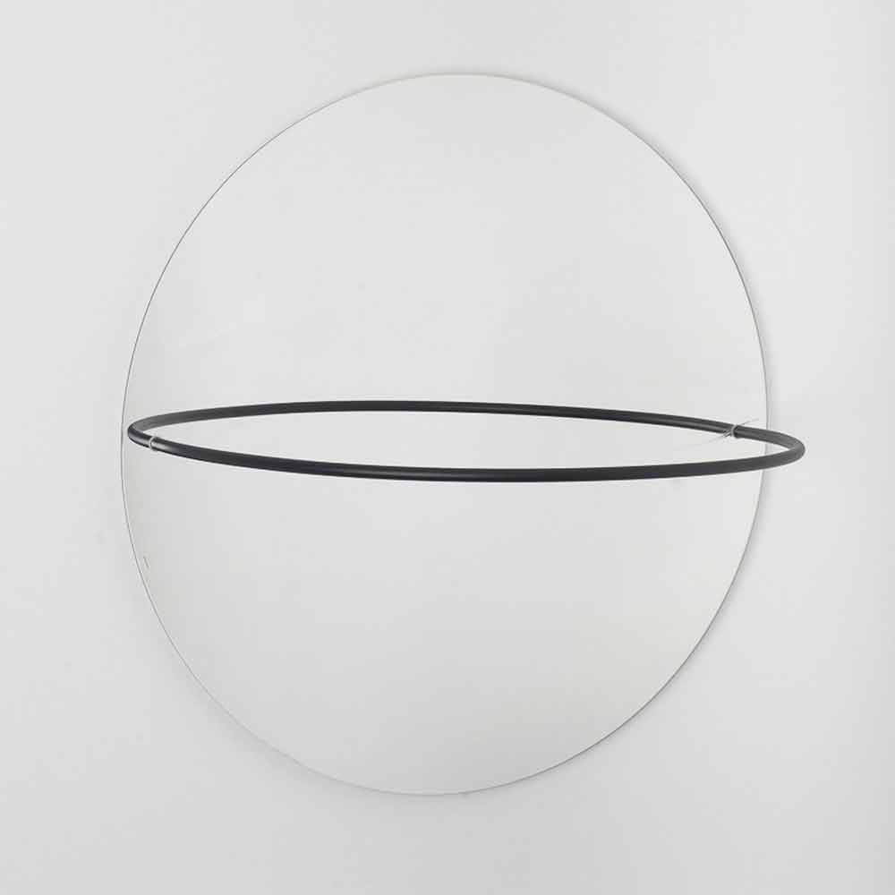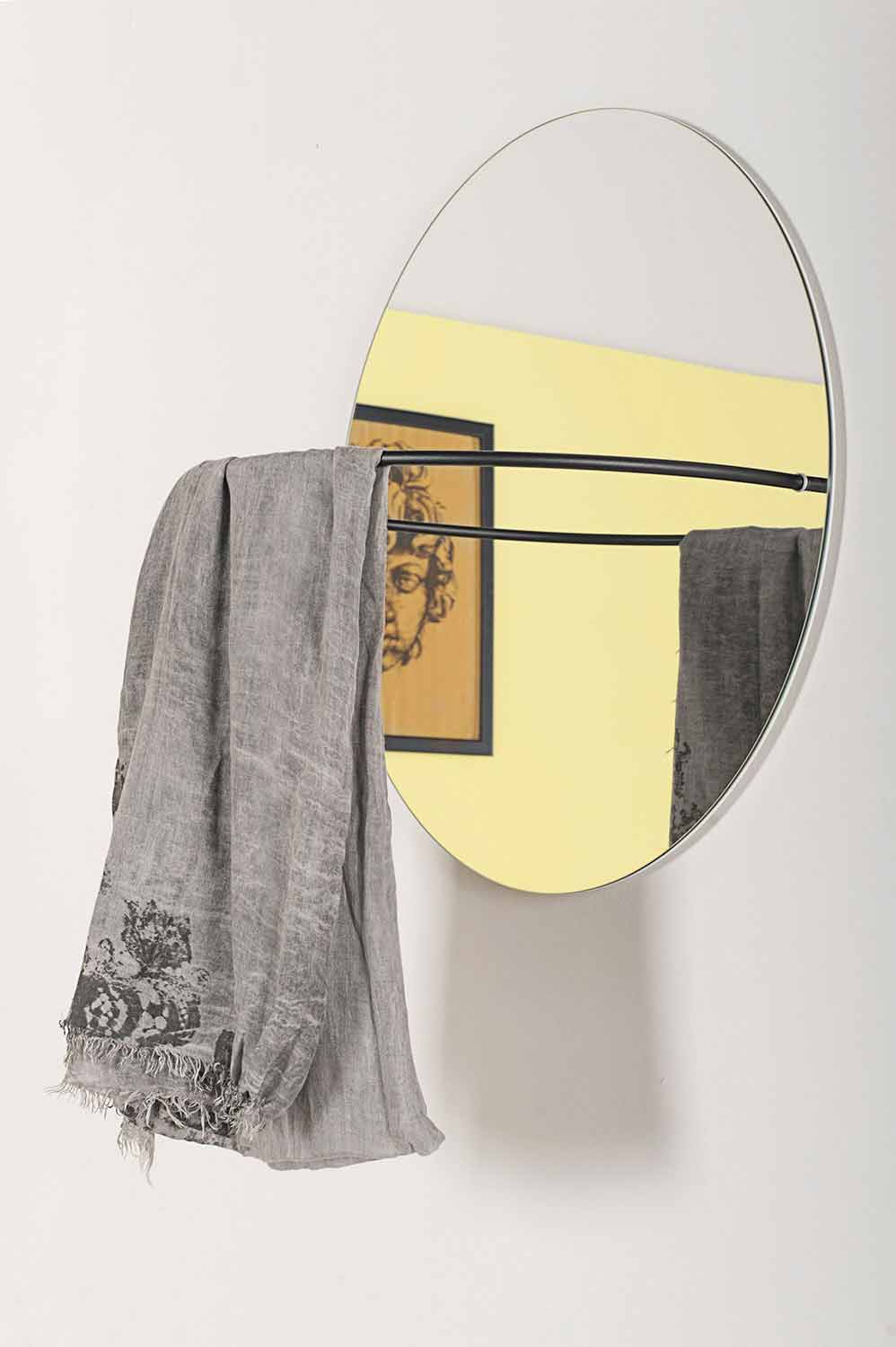 Espelho redondo de parede com moderno cabide em aço Made in Italy.