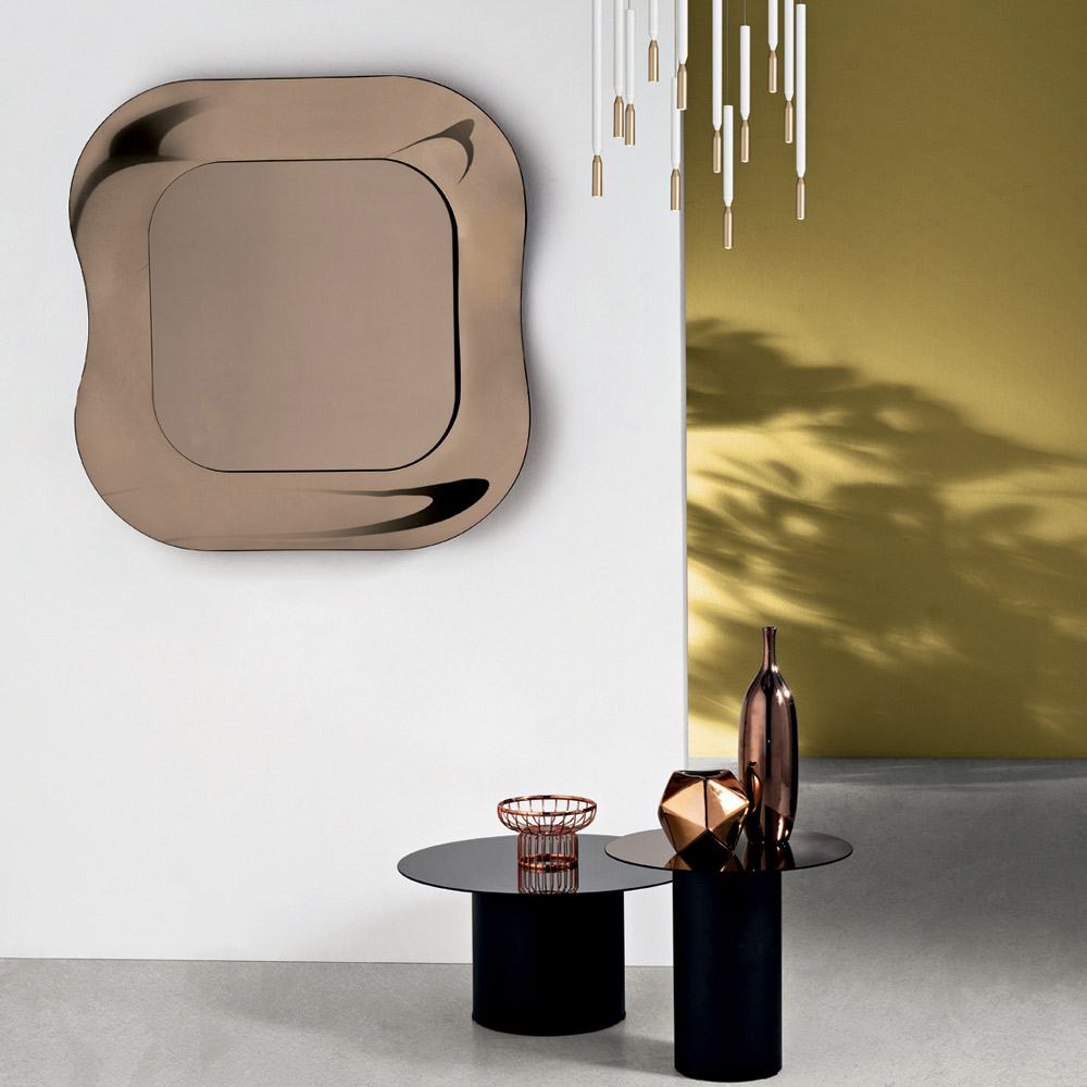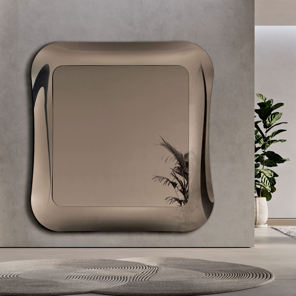 Um elegante espelho de parede desenhado na Itália , ideal para valorizar espaços como a entrada , a sala de estar ou o quarto . Seu design refinado combina linhas retas e detalhes texturizados, transformando a parede em um elemento marcante capaz de enriquecer o ambiente com elegância.