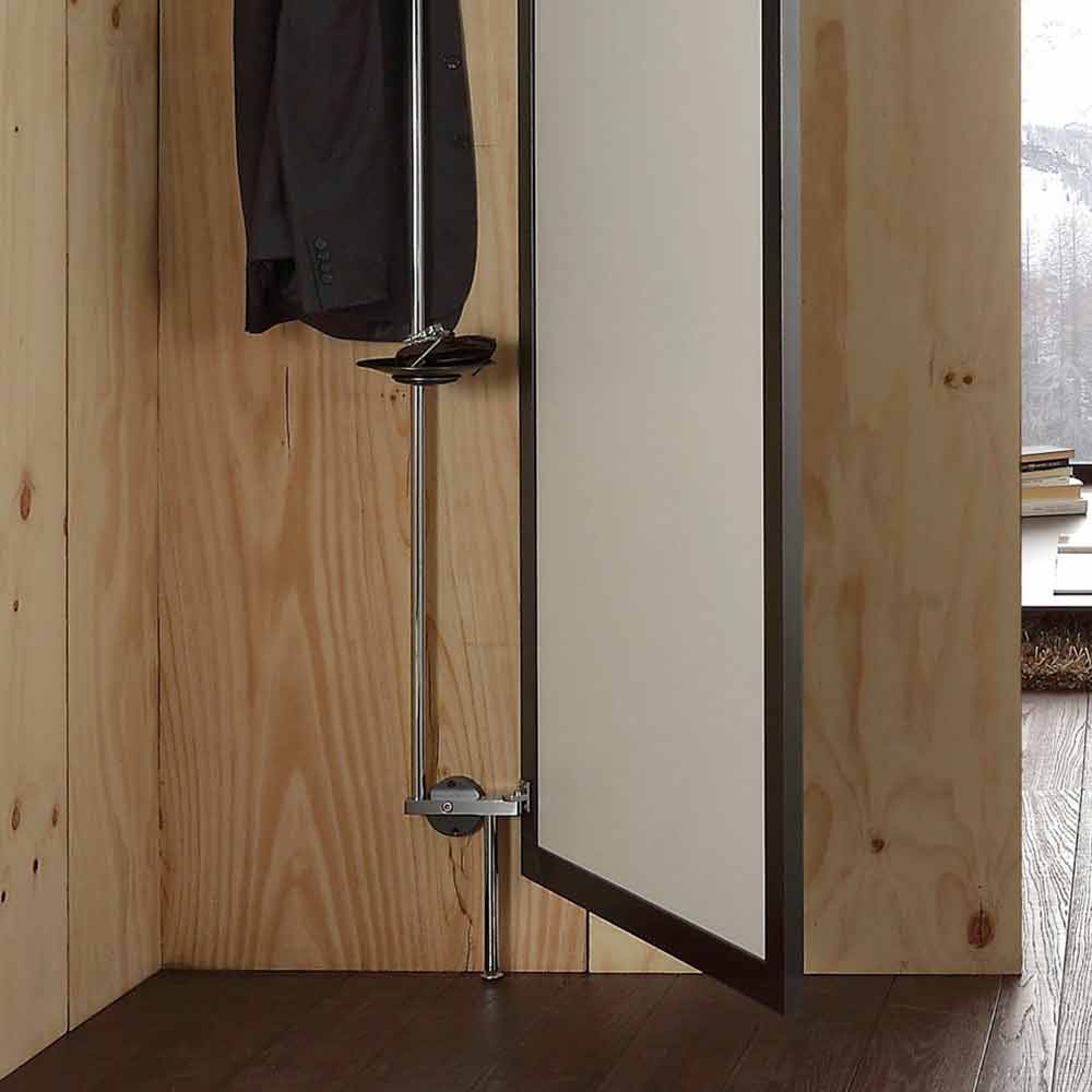 Espelho de parede inovador em vidro fumê com abertura made in Italy com estrutura de metal pintado de preto completo com sistema de parede de metal cromado incluindo 3 ganchos e uma prática placa de armazenamento. Um design extremamente simples e essencial alia-se a uma ideia original e inovadora, dando vida a uma solução de mobiliário funcional capaz de se adaptar a qualquer ambiente no qual se crie um espaço escondido para ser dedicado à organização de vários objetos. A sua estrutura está pensada para os espaços recônditos da casa que muitas vezes não são utilizados, mas que podem ser transformados em áreas práticas para colocação de malas, casacos e muito mais, conseguindo manter um ambiente limpo e arrumado.