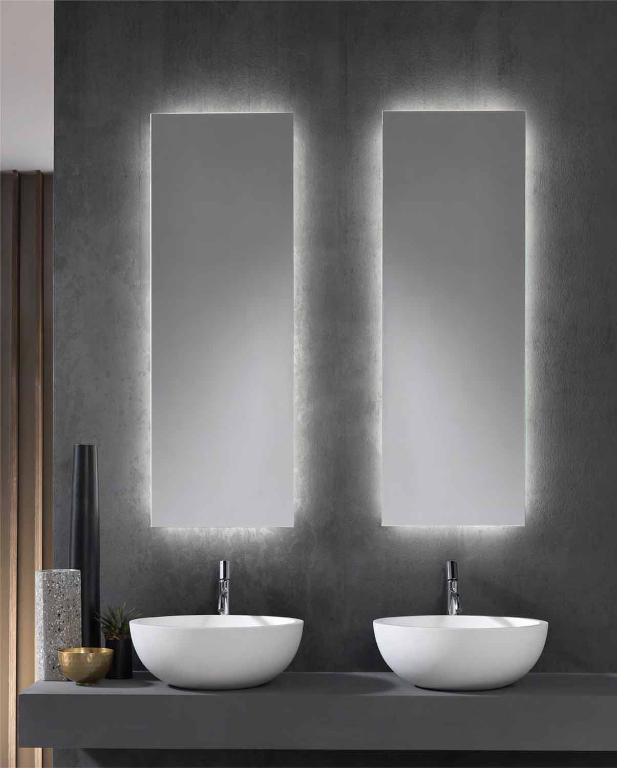 Espelho de parede retroiluminado moderno retangular com luz LED Made in Italy.