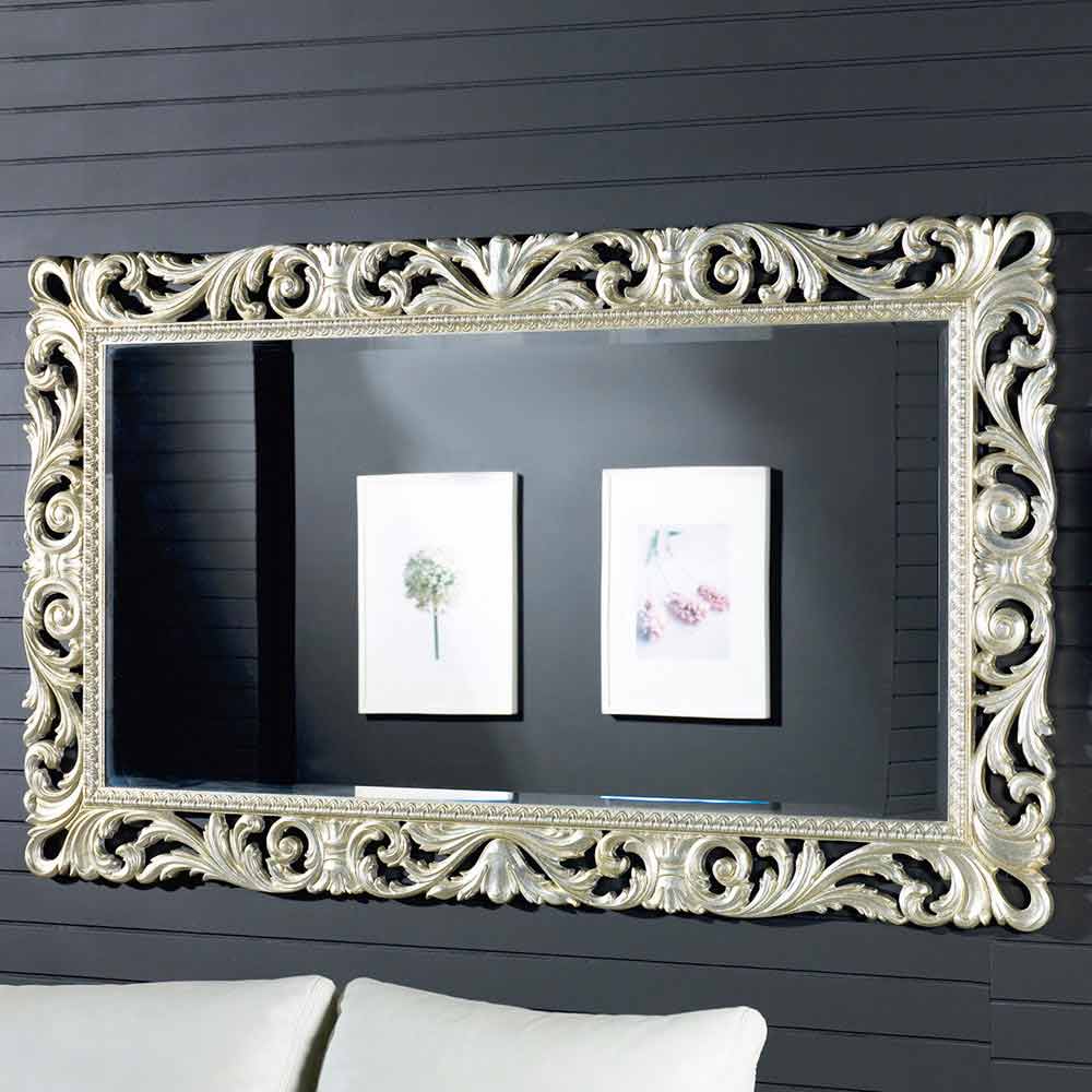 Este espelho é um triunfo de estilo e detalhe , uma peça que fala diretamente à alma de quem aprecia o luxo clássico com um toque contemporâneo. A moldura é majestosamente esculpida, repleta de volutas e motivos florais, que remetem ao fino artesanato italiano, conferindo vivacidade e amplitude a qualquer ambiente.
