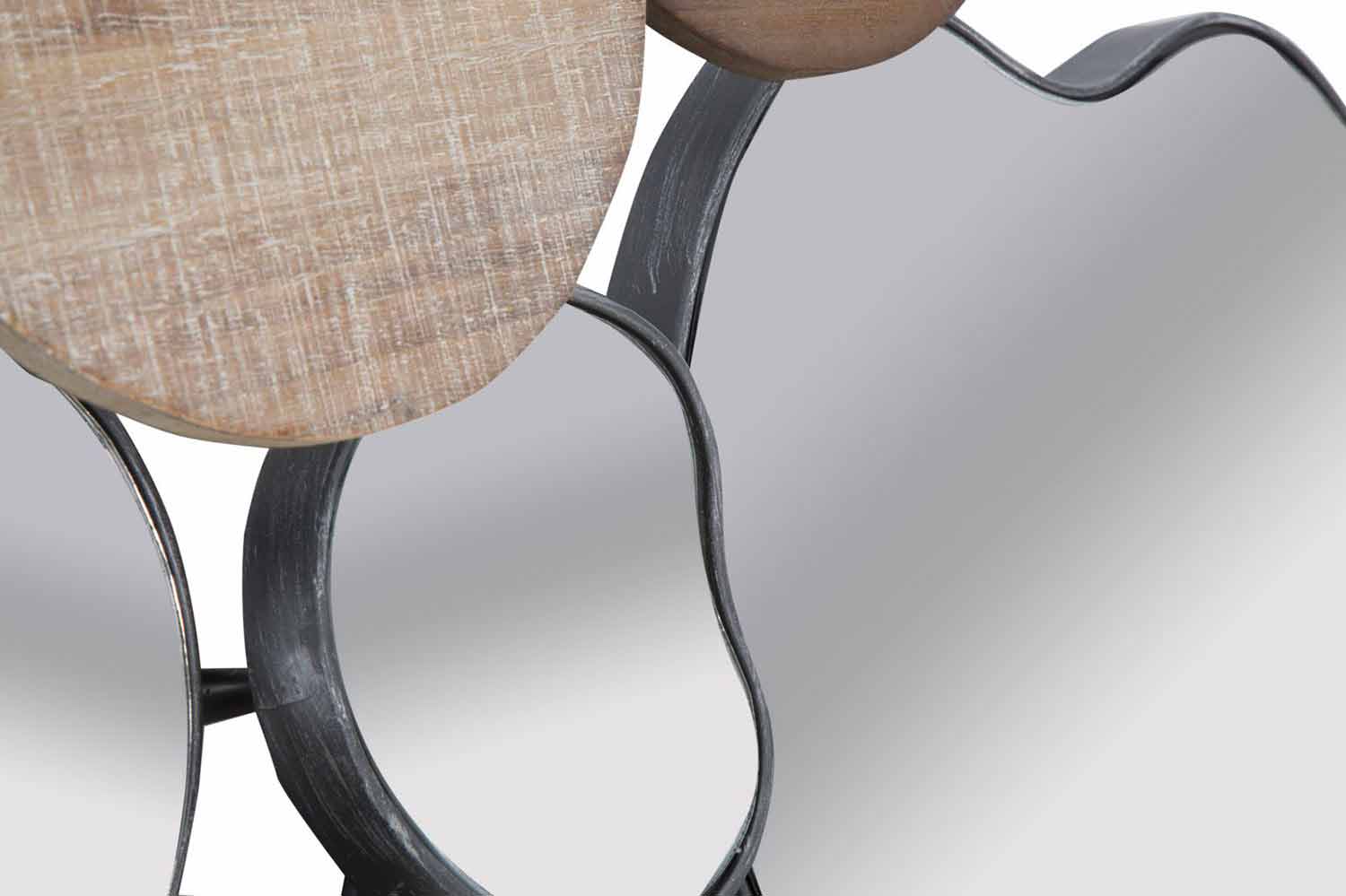 Espelho de parede de design moderno em madeira e ferro.