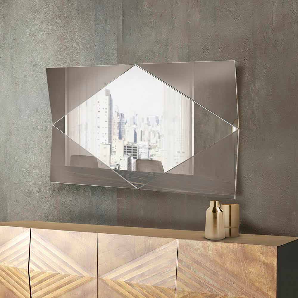Espelho de parede com cantos espelhados em bronze ou fumê Fabricado na Itália.