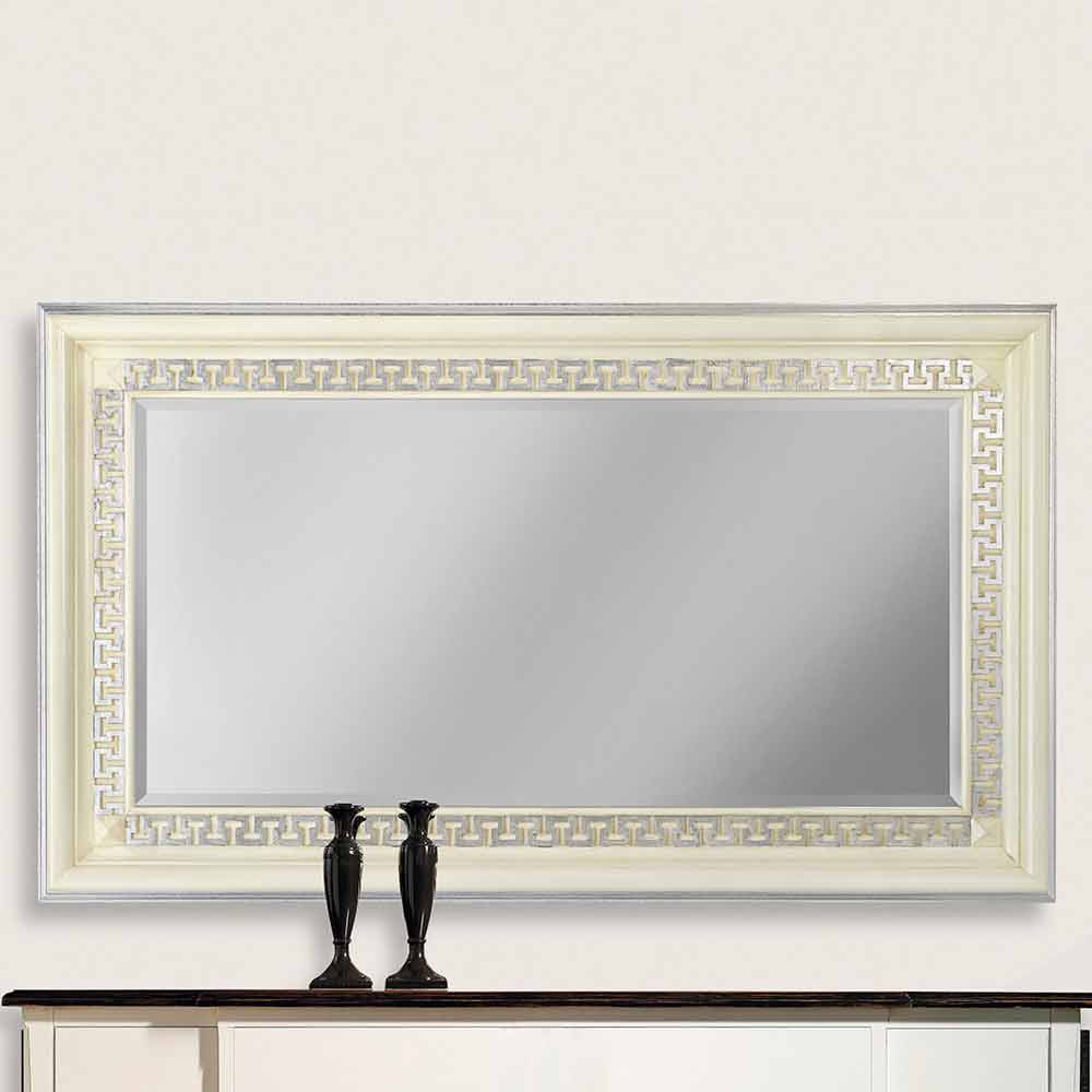 Este espelho é um exemplo elegante que incorpora uma estética contemporânea com toques clássicos . O design apresenta uma moldura fina e refinada com o motivo chave grega, um clássico atemporal que simboliza o infinito e a eternidade, finamente incrustado.