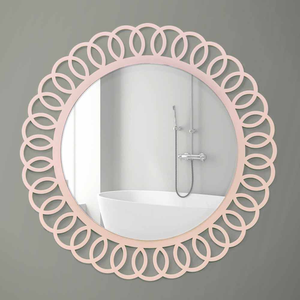 Espelho de parede redondo com moldura de madeira rosa com design moderno fabricado na Itália.