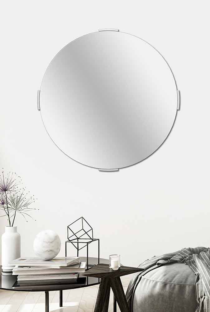 Espelho de parede cantilever moderno e redondo de design minimalista fabricado na Itália.