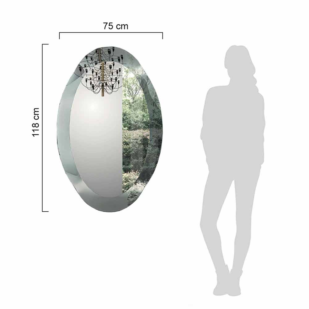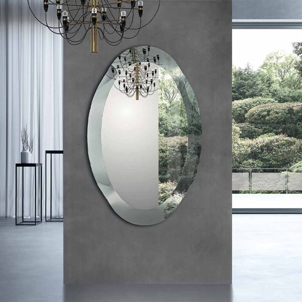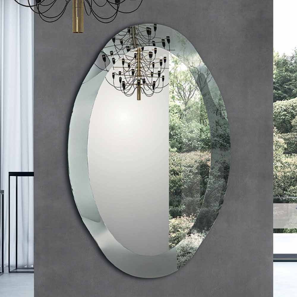 Espelho oval moderno com moldura de vidro curvo com efeito cristal Fabricado na Itália.