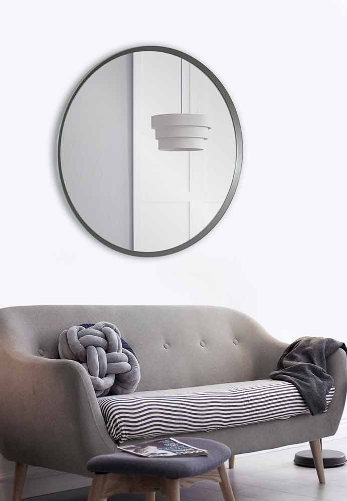Espelho de parede redondo com moldura inclinada de design moderno em 3 cores, fabricado na Itália.