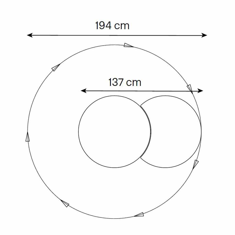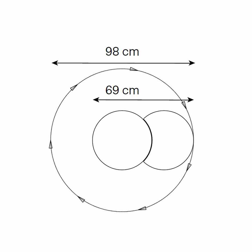 materiais de alta qualidade e é composto por uma estrutura central fixa e um satélite que gira 360 °.