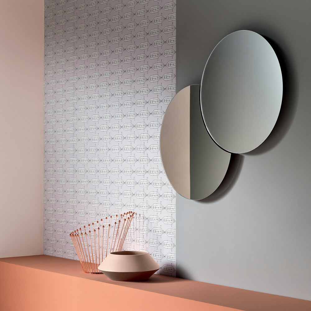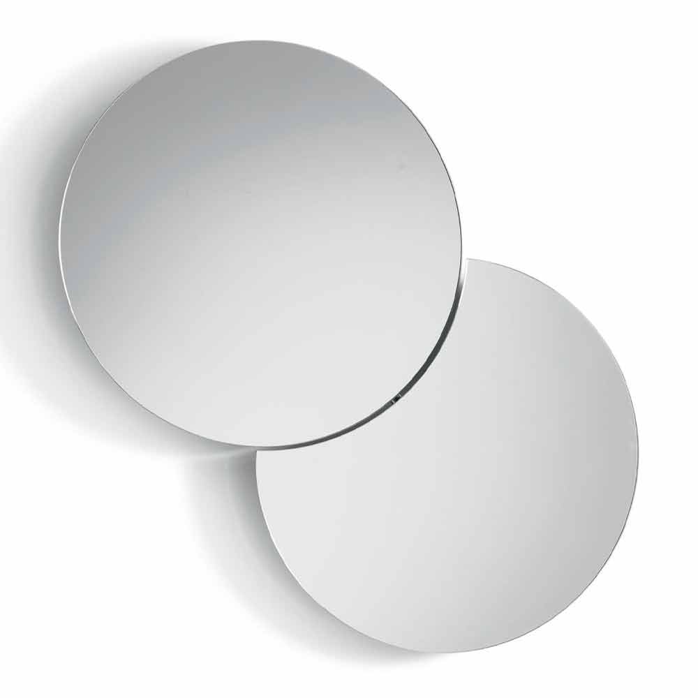 Espelho redondo de parede estilo moderno com satélite rotativo, realizado à mão na Itália.