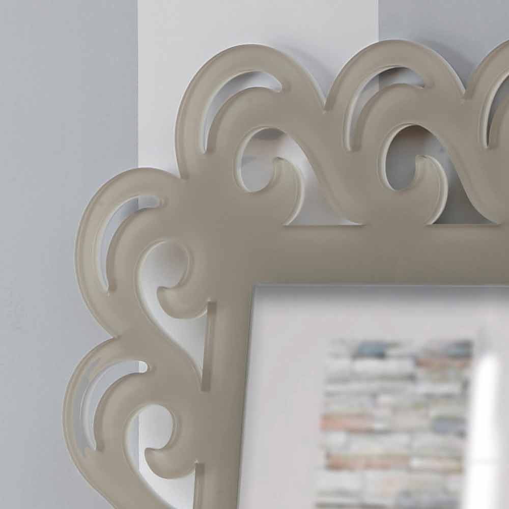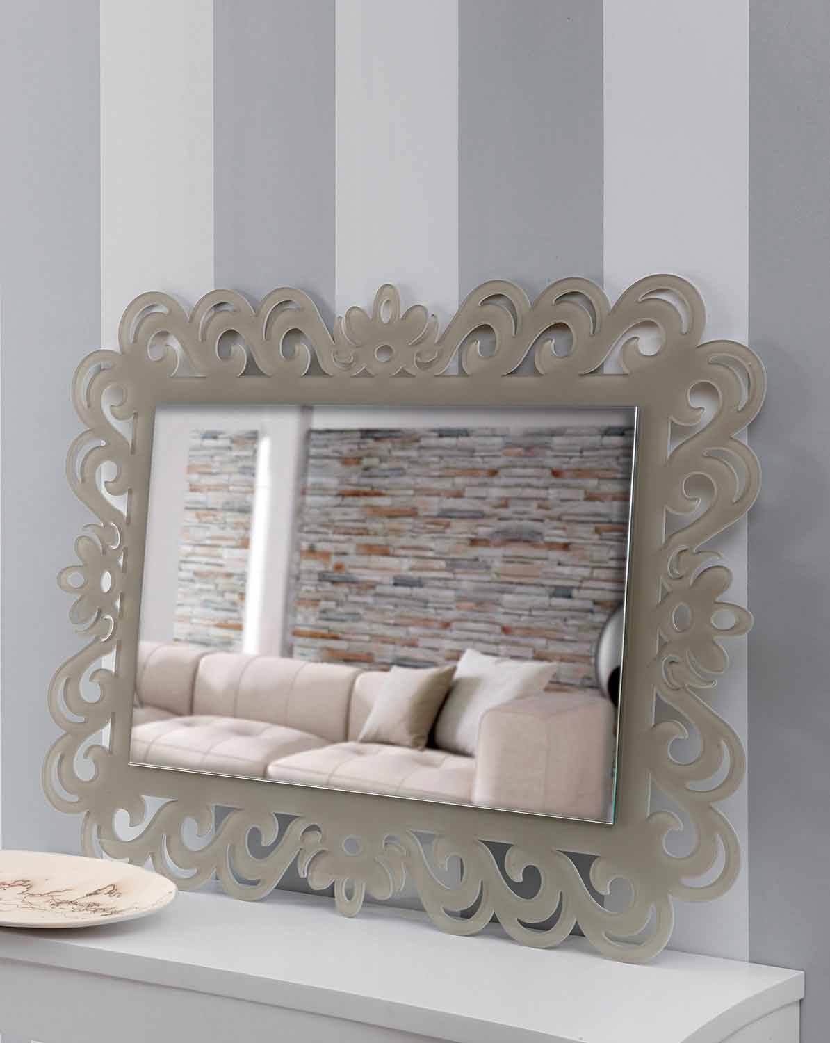 Espelho de parede retangular com moldura floral, em plexiglass pomba cinza de design moderno fabricado na Itália.