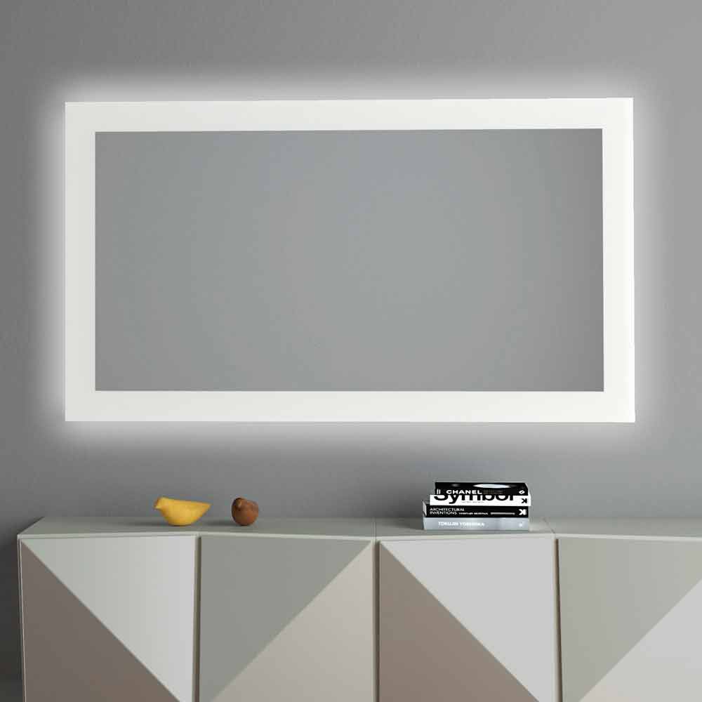 Espelho de parede retangular retroiluminado com moldura jato de areia Fabricado na Itália.