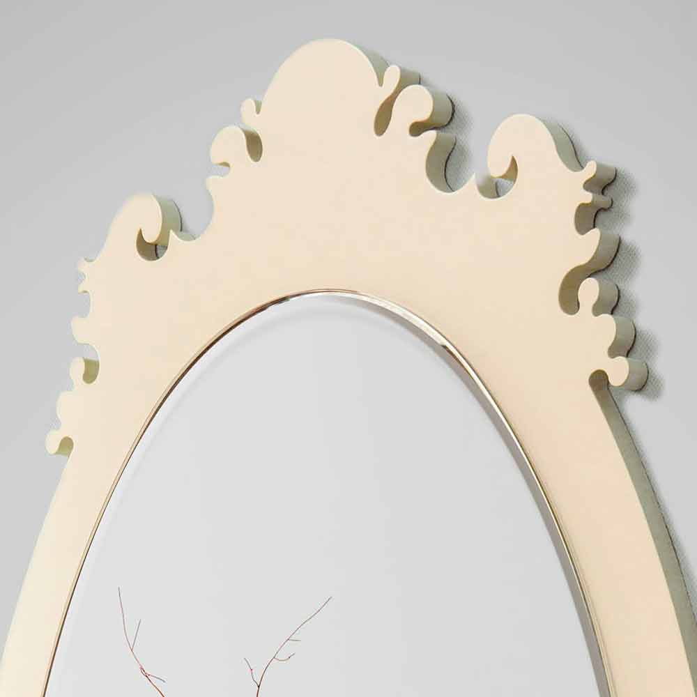 Espelho de parede design retro em madeira marrom cortada a laser, fabricada em Itália.