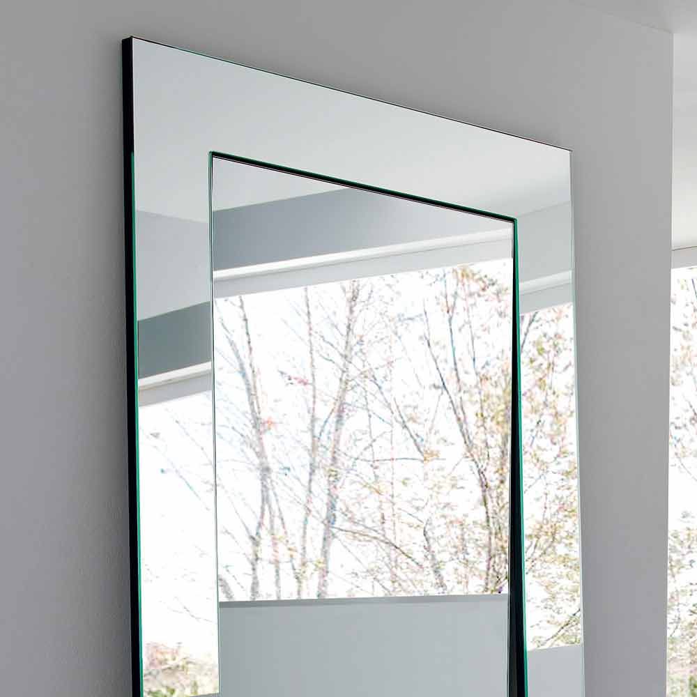 Espelho autônomo retangular de design moderno, com moldura inclinada, realizado à mão na Itália.