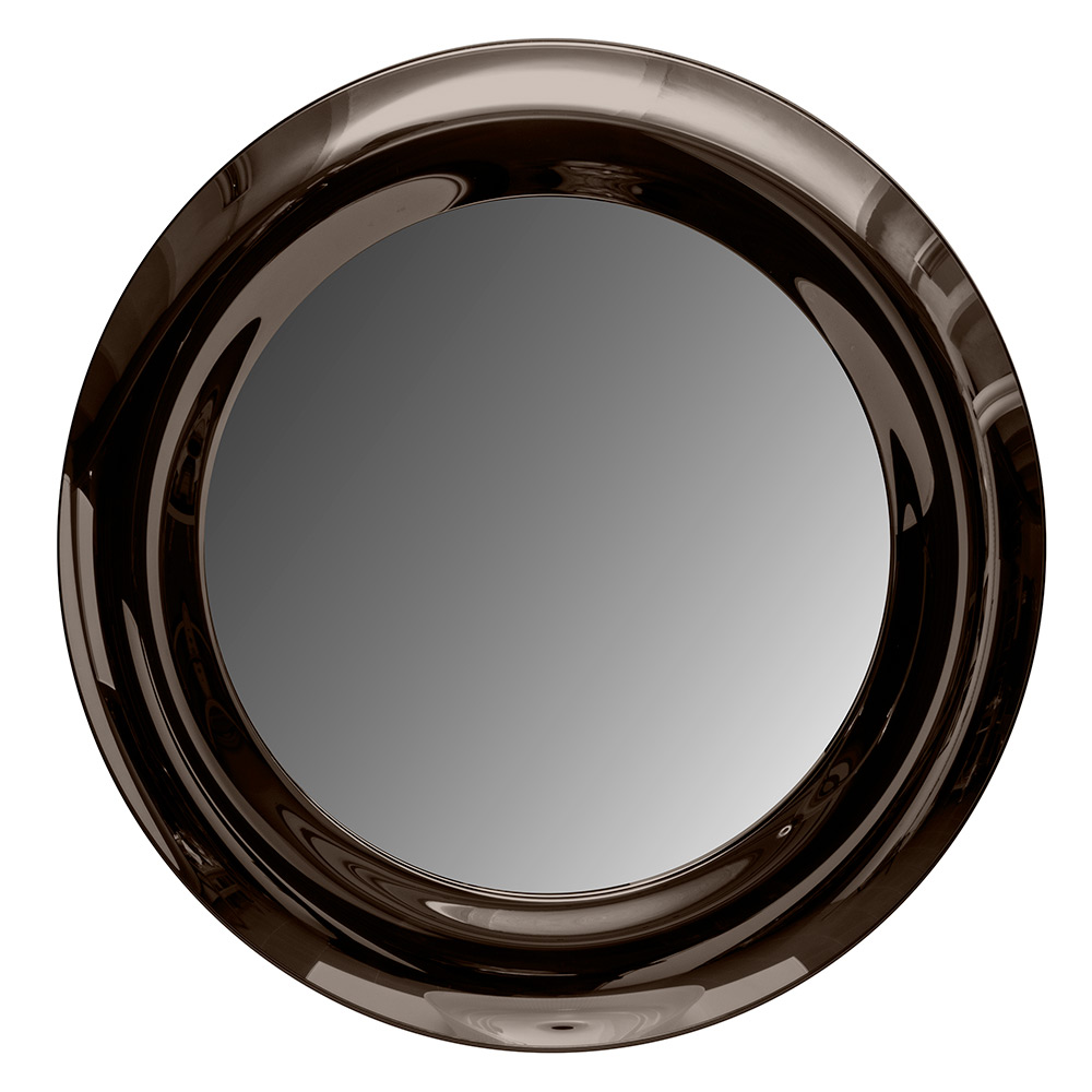 Elegância e personalidade se misturam neste espelho redondo para banheiro. Ele apresenta um painel de vidro curvo com efeito "donut", moldado a partir do vidro de 5 mm para criar um espaço para o espelho reflexivo, protegido por uma resina antioxidante.