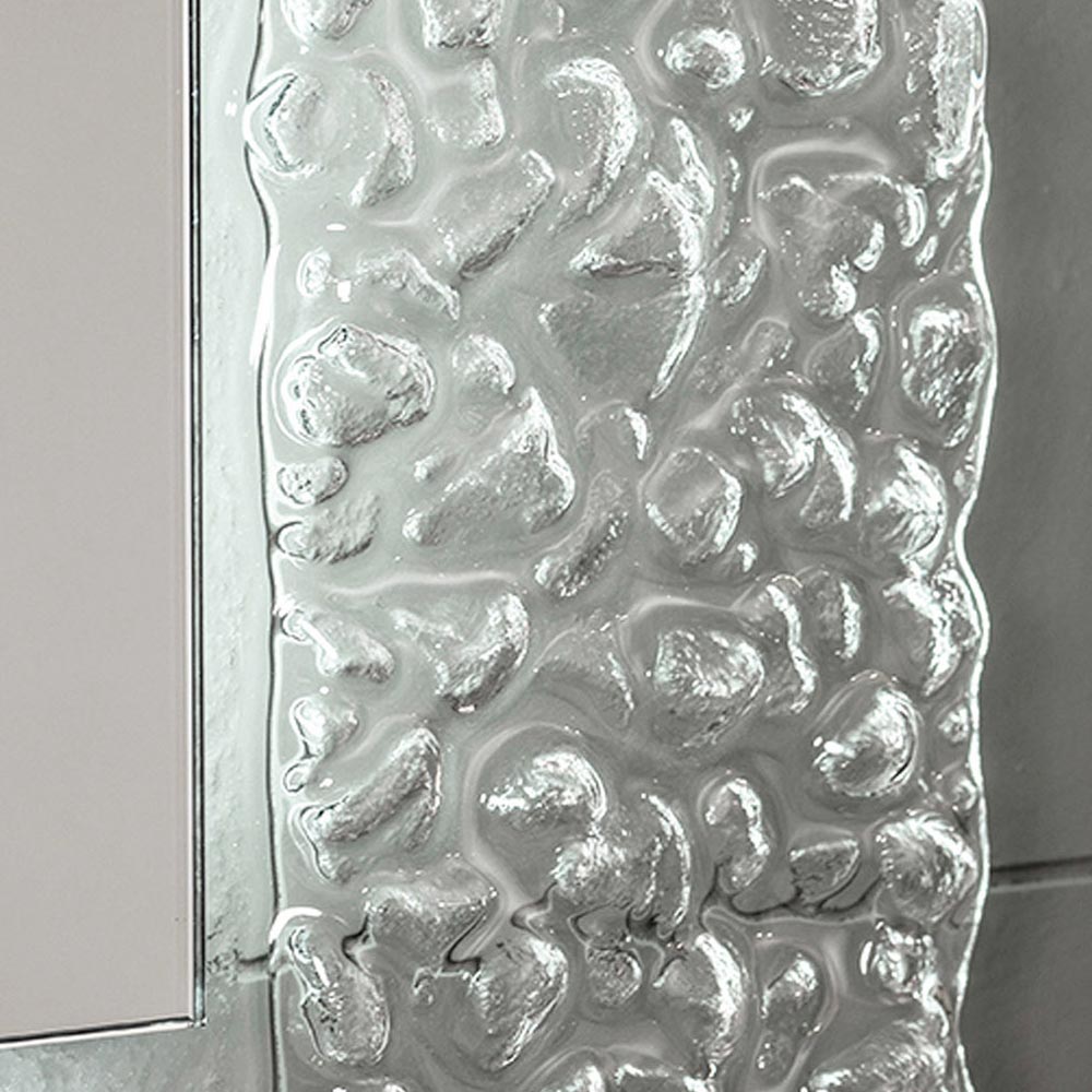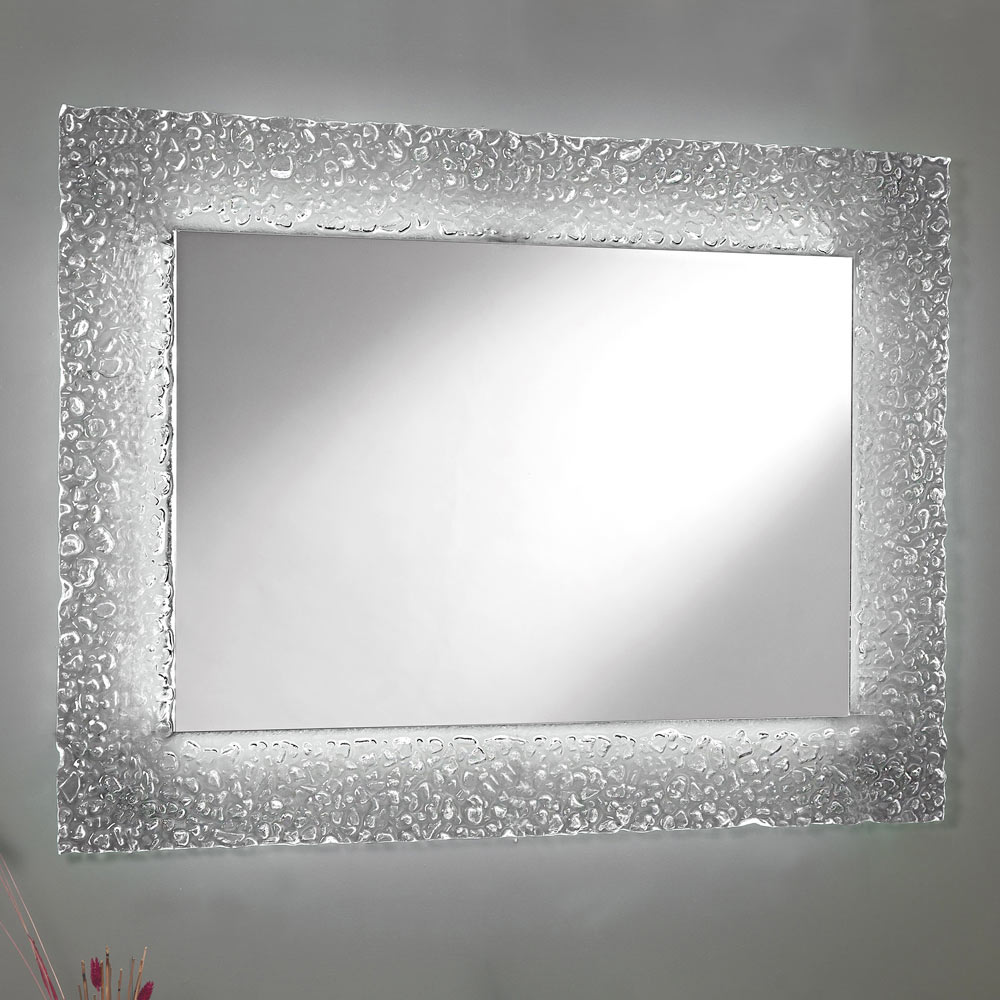 Espelho decorativo de parede com moldura de vidro fundido e iluminação LED integrada, de alta qualidade made in Italy.