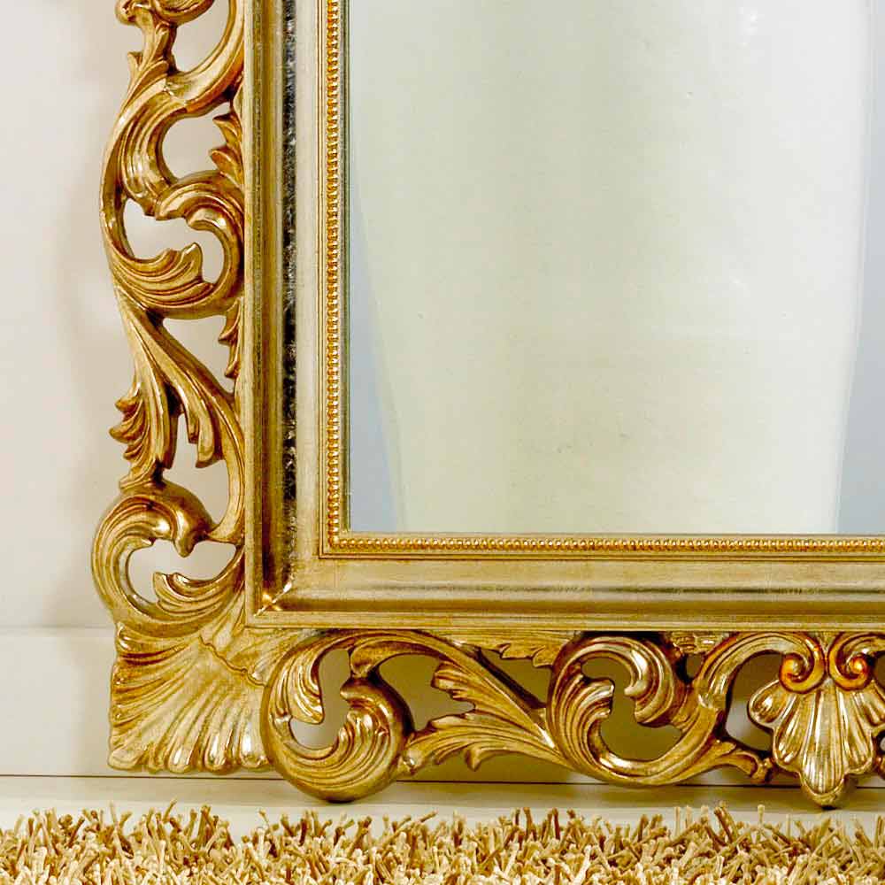 O espelho Tiara é caracterizado por um trabalho artesanal realizado com materiais de qualidade e com a experiência de habilidosos artesãos italianos. A moldura é feita de madeira decorada com esculturas. Acabamento em folha de prata Meca. Espelho de cristal com 4mm de espessura. Feito na Itália.