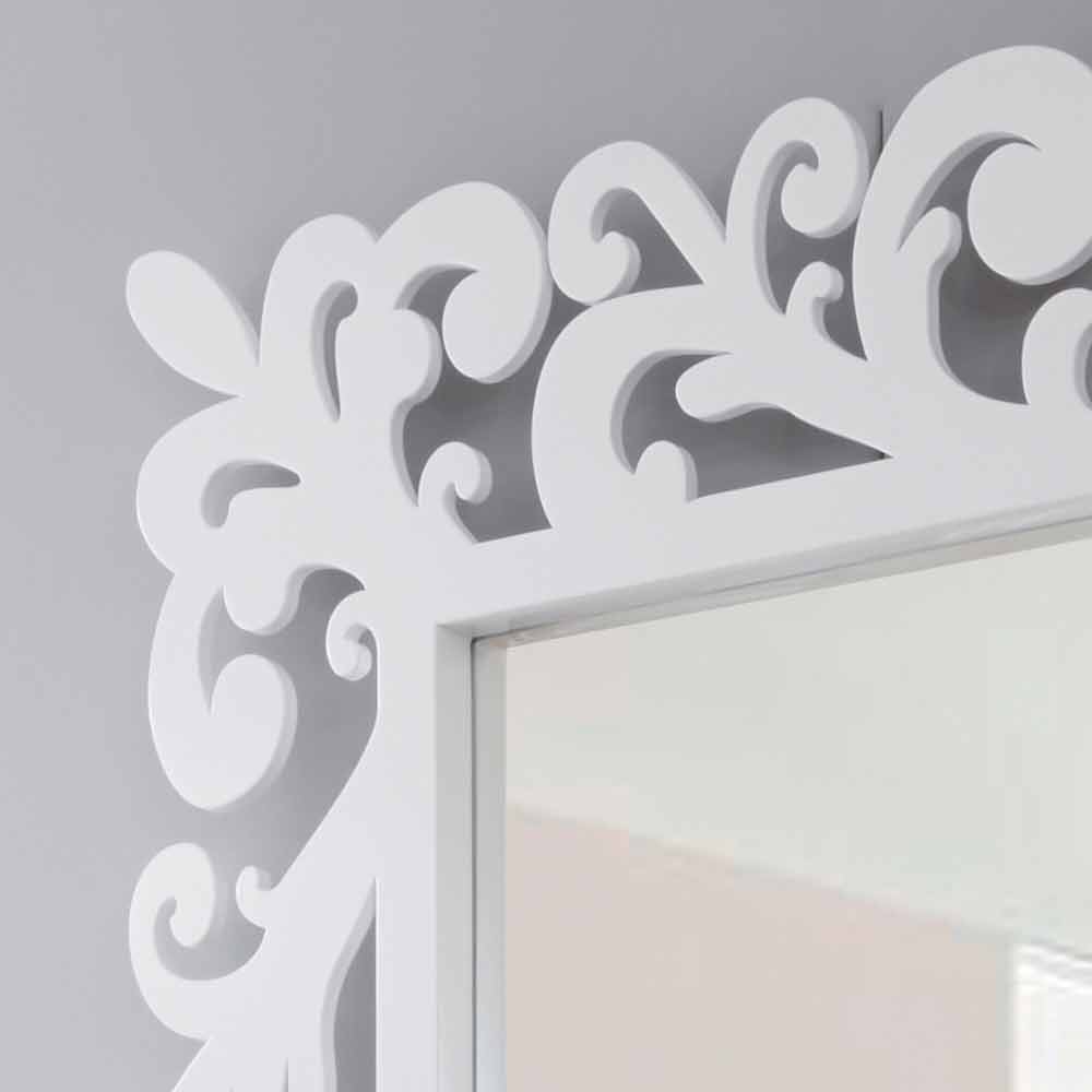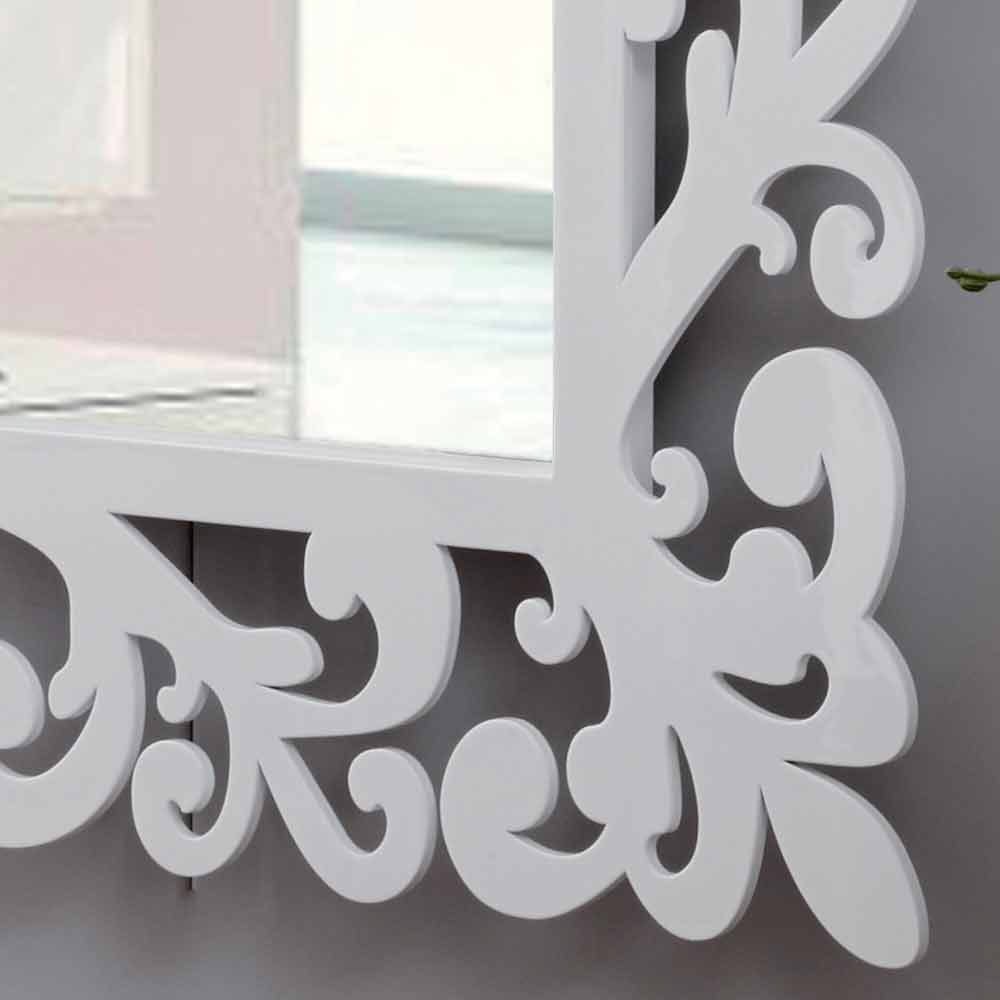 Espelho de parede retangular branco brincalhão ou opaco, design moderno com moldura de madeira fabricada na Itália.
