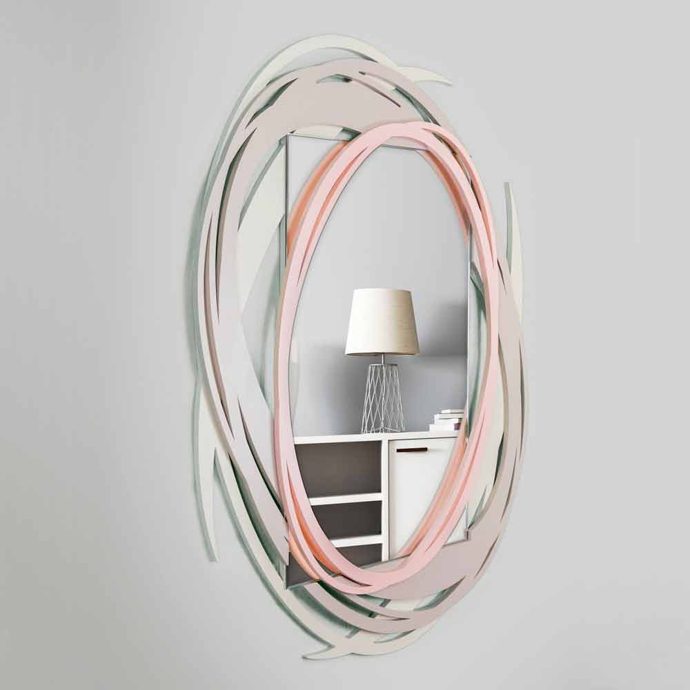 Espelho de parede de design moderno em madeira lacada colorida, grande e decorativo, fabricado na Itália.