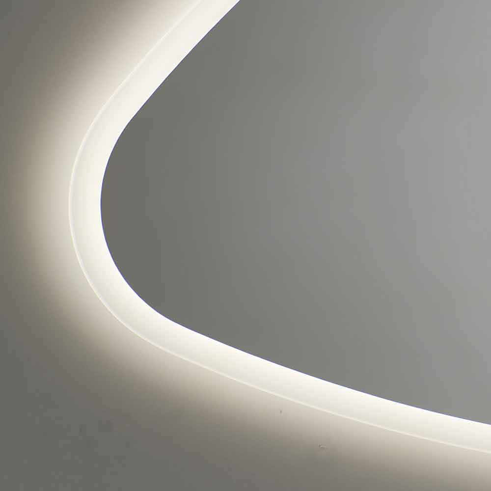Espelho de parede de formato moderno com LED e jato de areia Made in Italy.