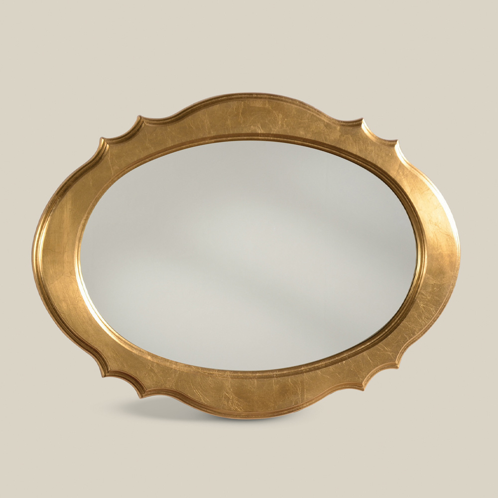 Espelho de parede oval estilo clássico com moldura de madeira e decorado com elegante folha de ouro , perfeito para decorar sua sala de estar com personalidade e bom gosto. Um complemento único e refinado, totalmente feito na Itália por mestres artesãos , mestres da arte que finalizam cada complemento com sabedoria e gosto pela elegância. A produção é realizada com materiais nobres , realizando o trabalho à mão com o máximo cuidado e profissionalismo que distingue os produtos Made in Italy .