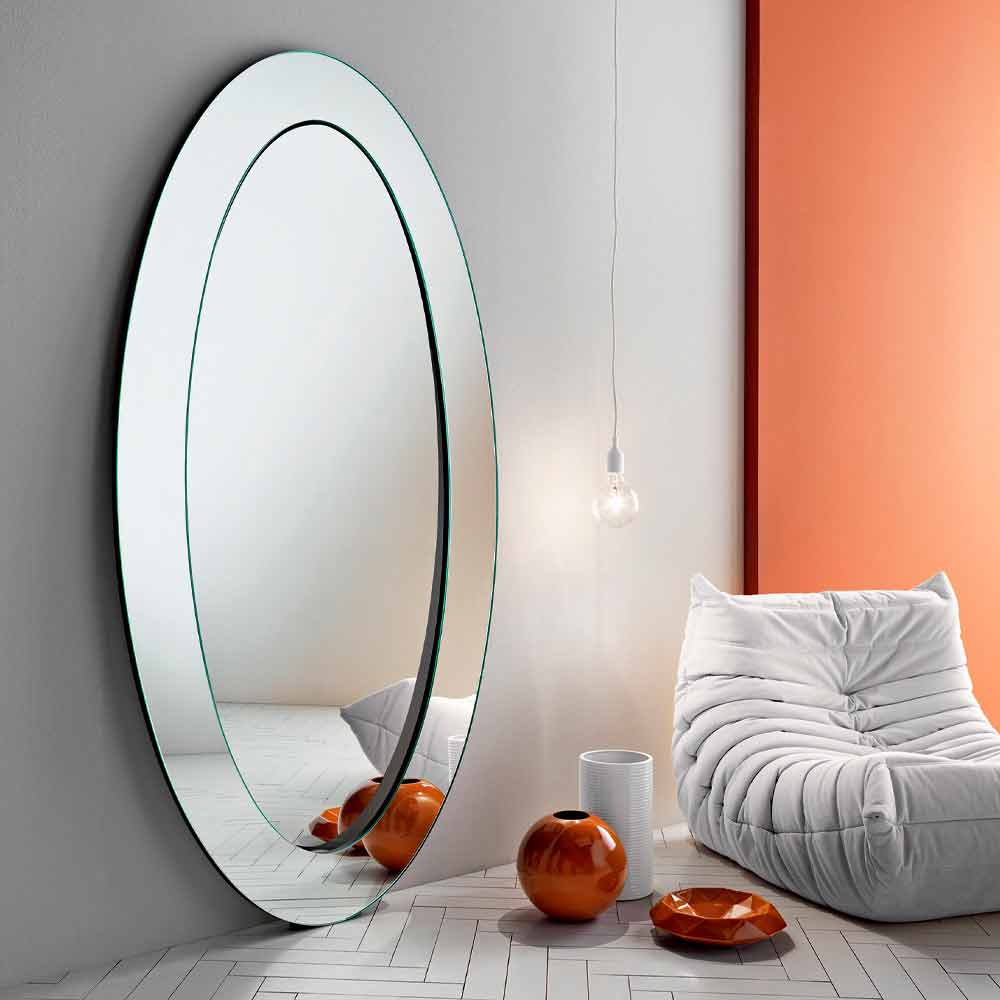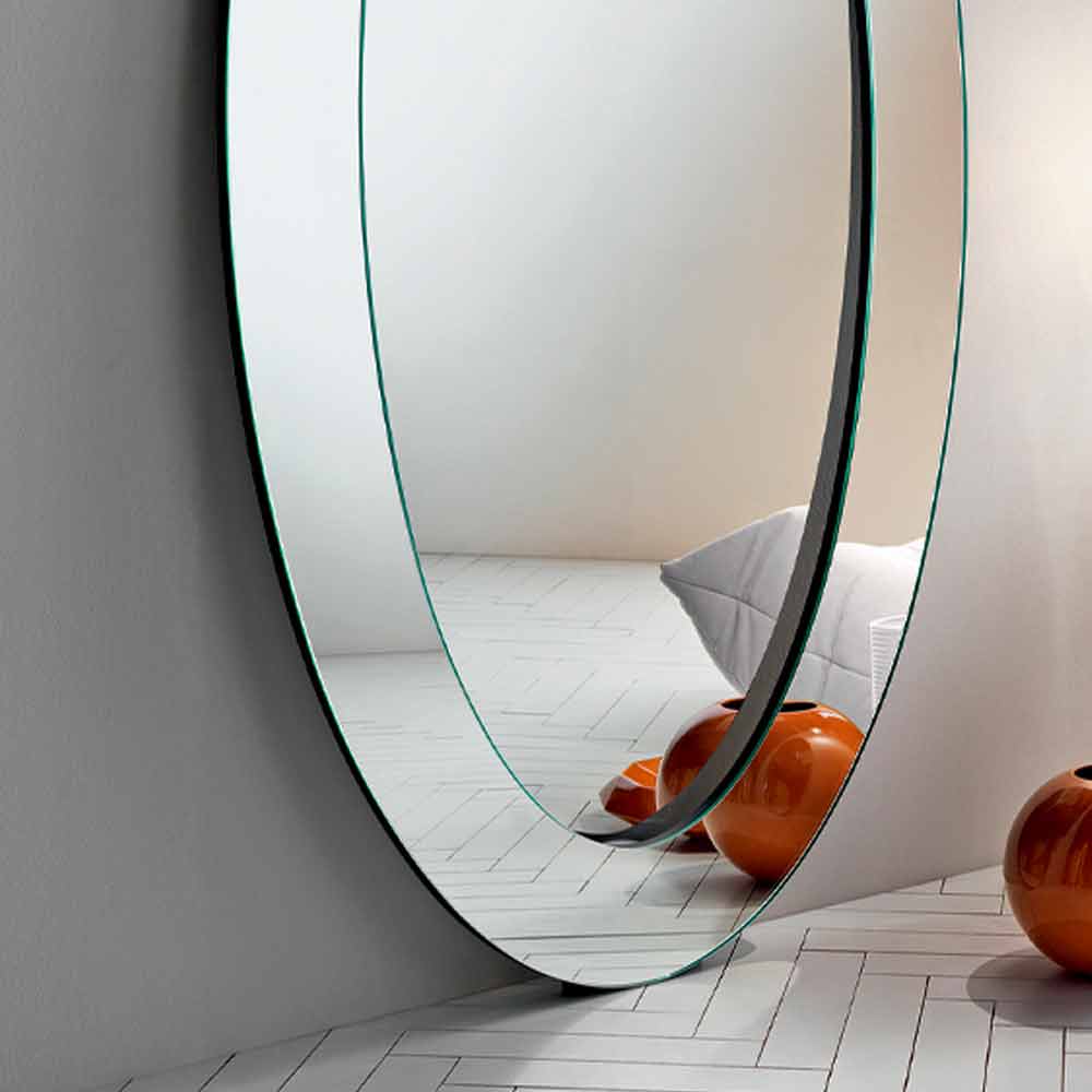 Espelho autônomo estilo moderno com moldura inclinada, realizado à mão na Itália.