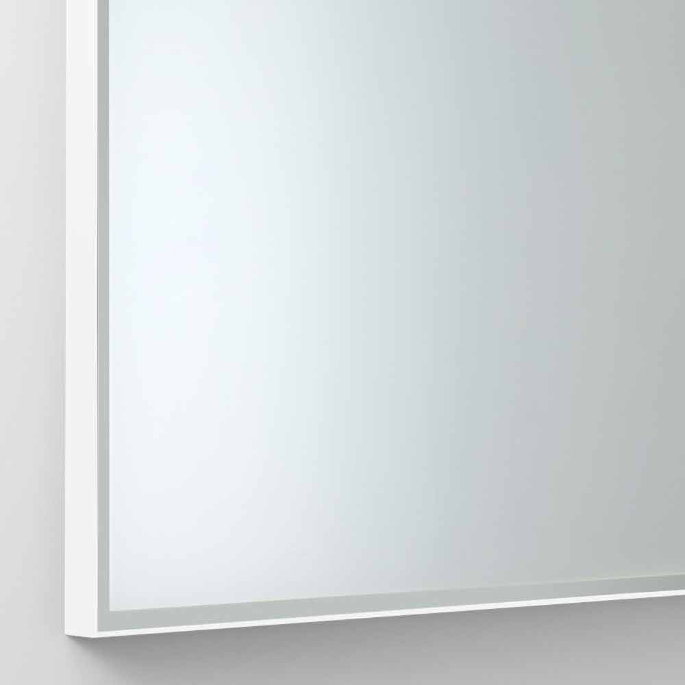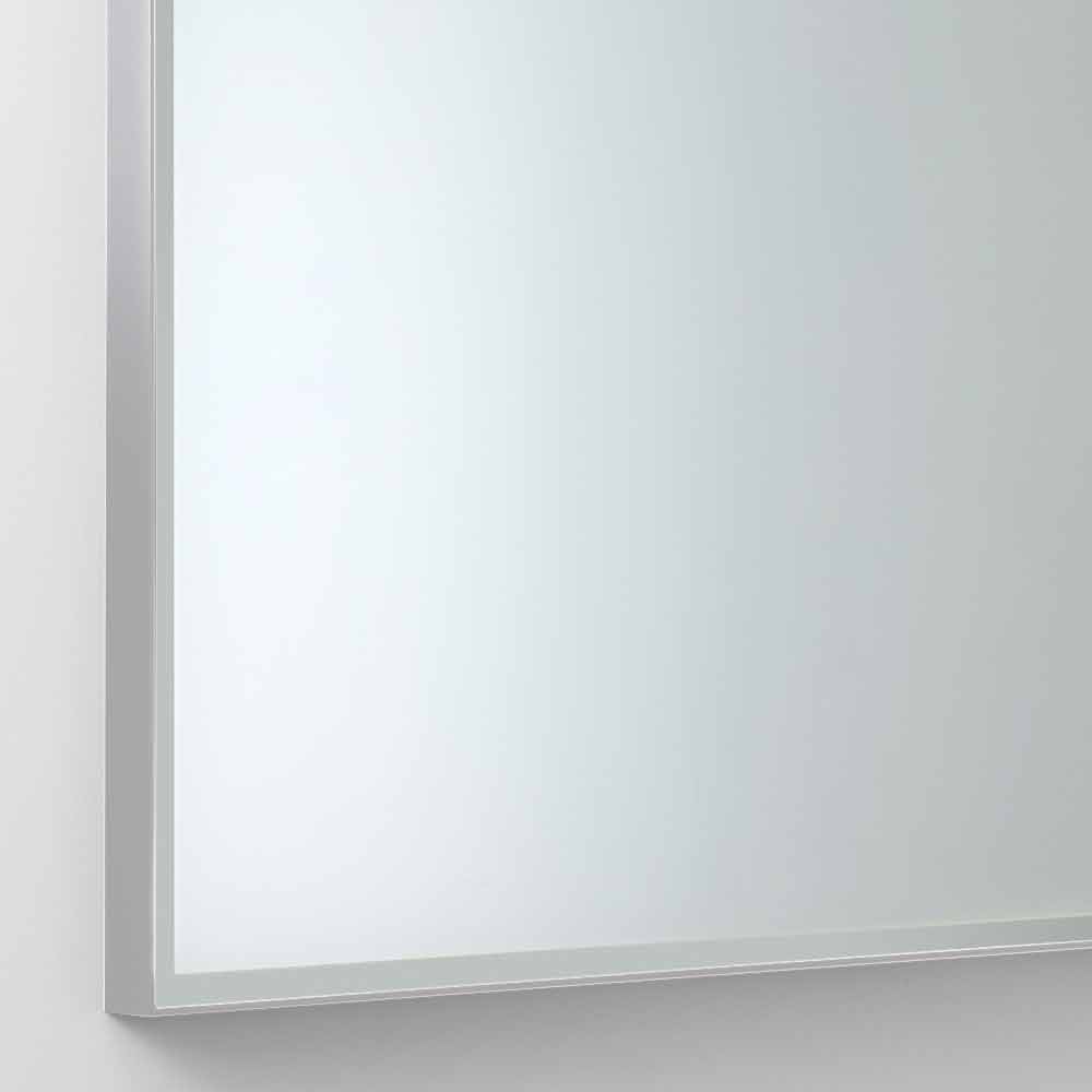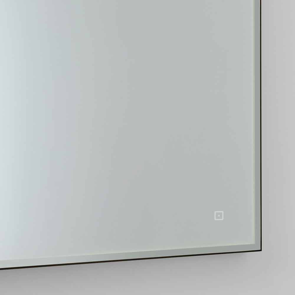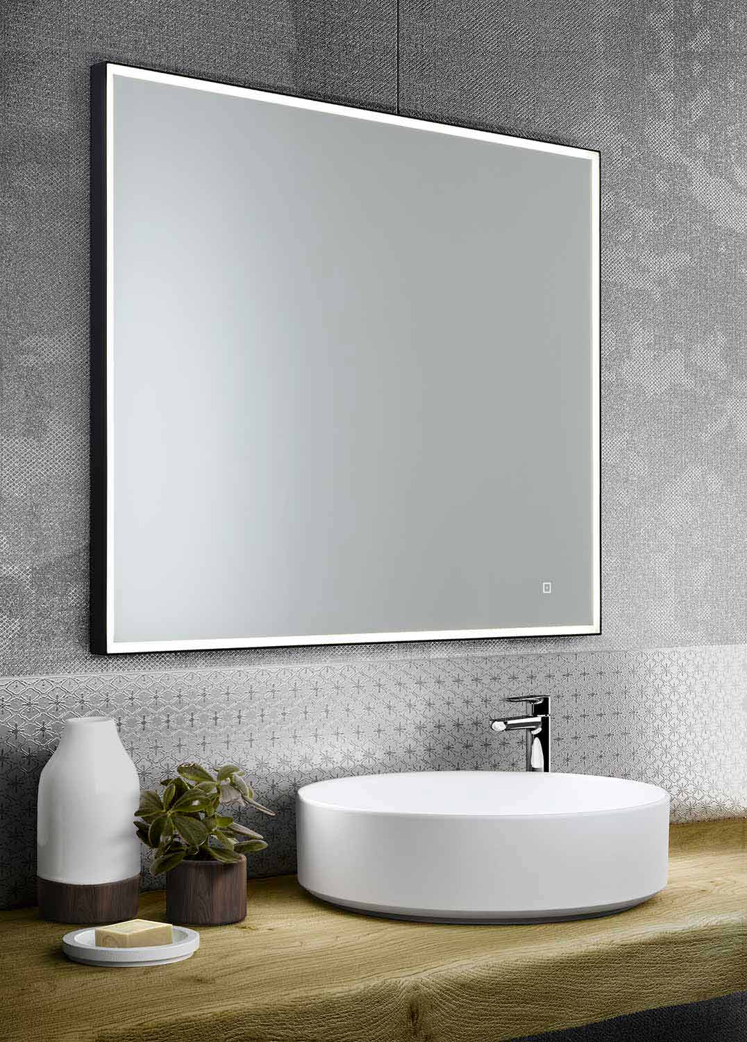 perfil de vidro acetinado , este espelho tem uma montagem reversível e a possibilidade de escolher entre dois tipos de luz, uma mais quente e outra natural.