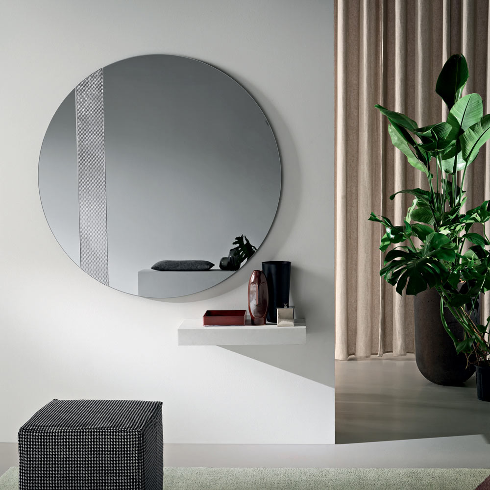 Um elegante espelho de parede de design italiano , ideal para valorizar espaços como hall de entrada , sala de estar ou quarto . Seu design simples e refinado combina superfícies refletoras e detalhes gráficos, transformando o espelho em um elemento decorativo capaz de embelezar a parede com equilíbrio e estilo.