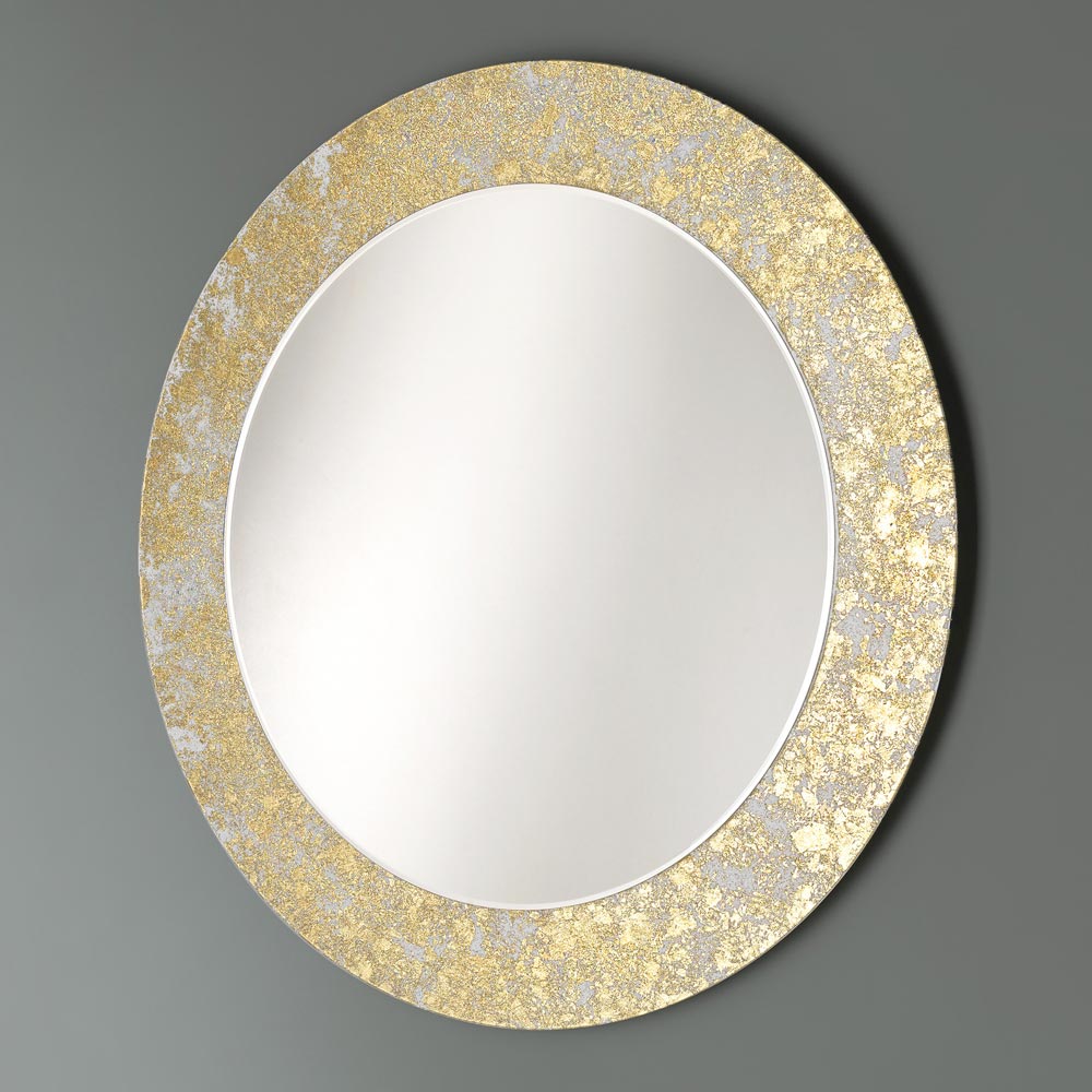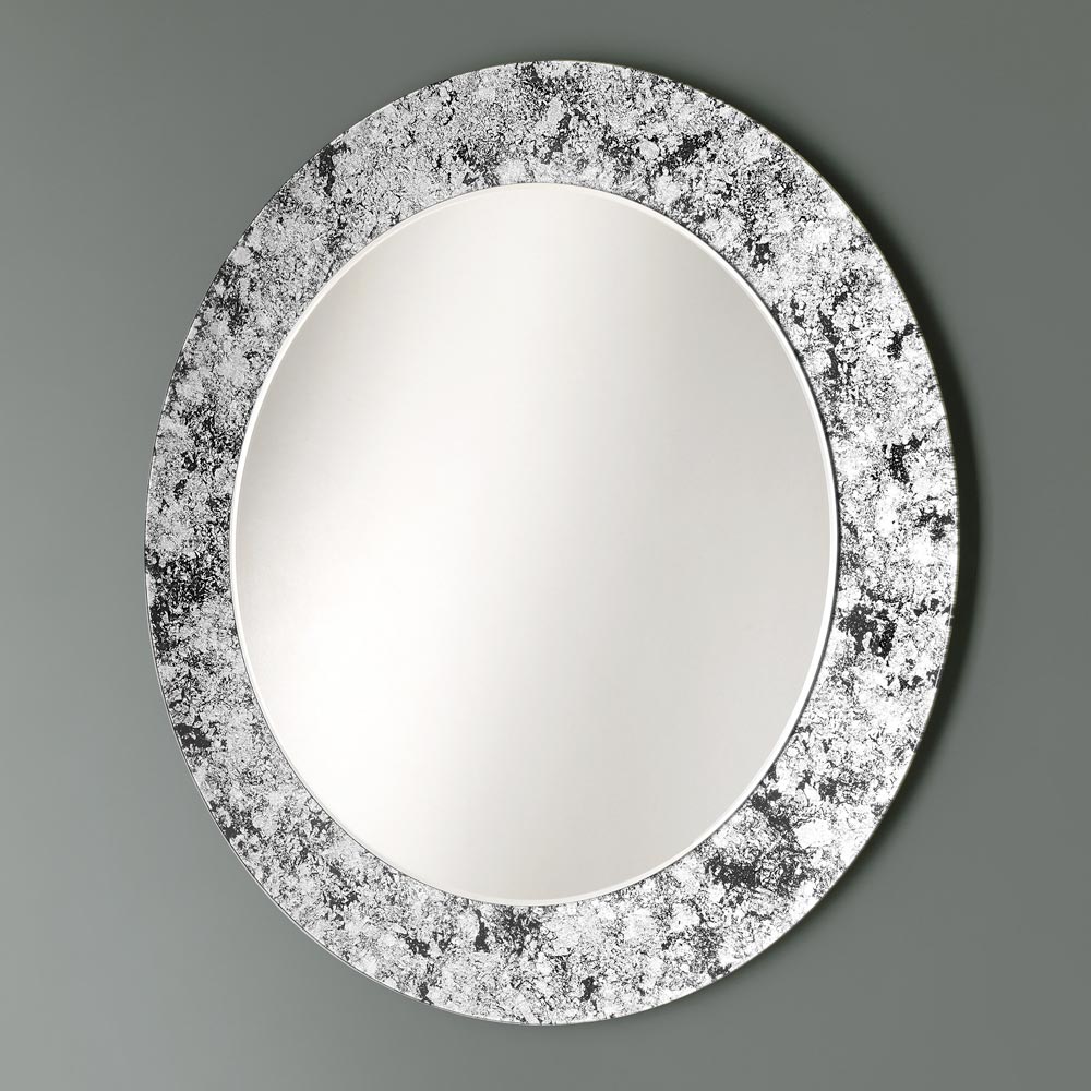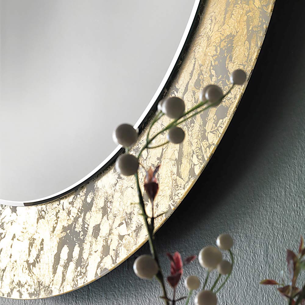 Espelho redondo decorativo de parede com moldura de vidro decorado com folhas 4 acabamentos made in Italy.