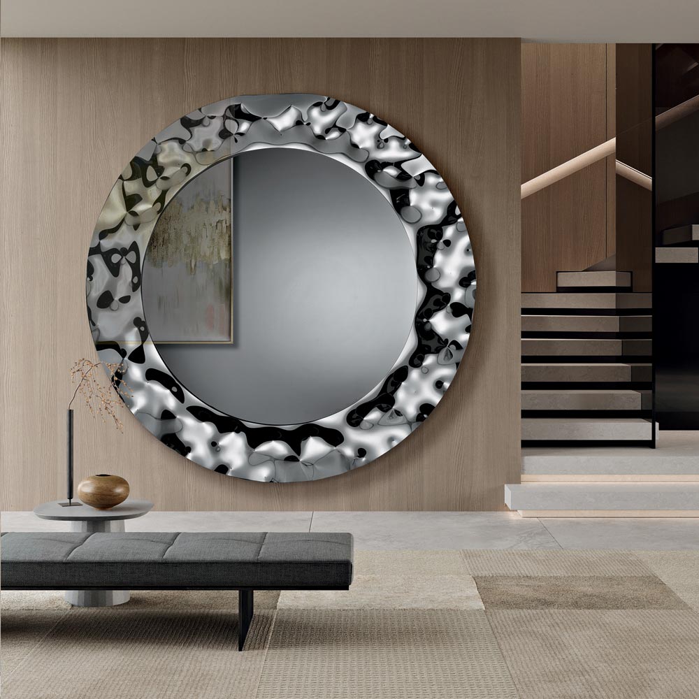 Um elegante espelho de parede de design italiano , ideal para valorizar espaços como hall de entrada , sala de estar ou quarto . Seu design refinado combina linhas suaves e detalhes texturizados, transformando o espelho em um verdadeiro elemento decorativo capaz de embelezar a parede.