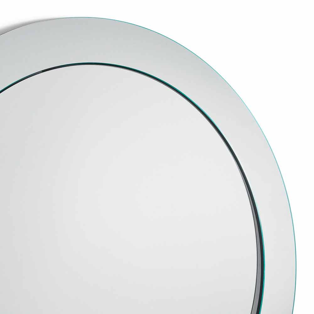 Espelho redondo redondo de design moderno com moldura inclinada, realizado à mão na Itália.