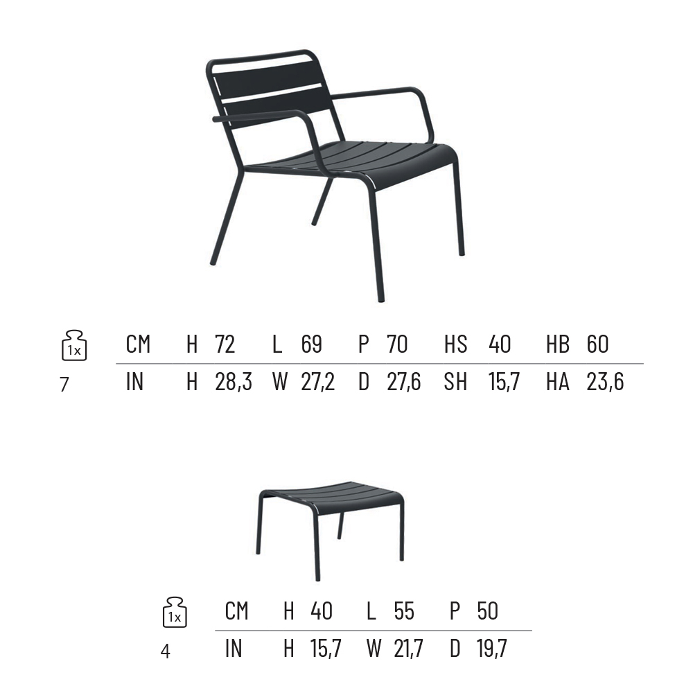- chaise longue : C 69 x P 70 x A 72 cm;