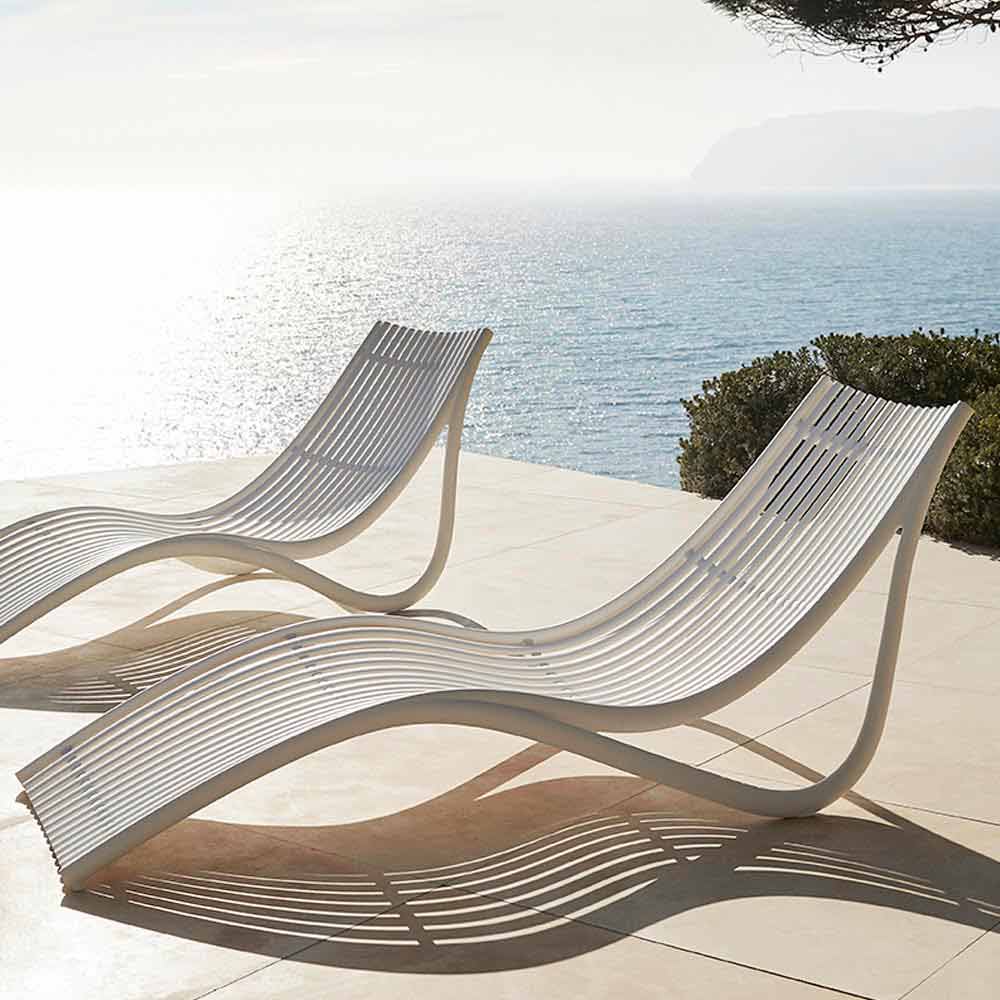 espreguiçadeira para jardim caracteriza-se pelas suas formas onduladas monobloco que remetem ao mar e oferecem