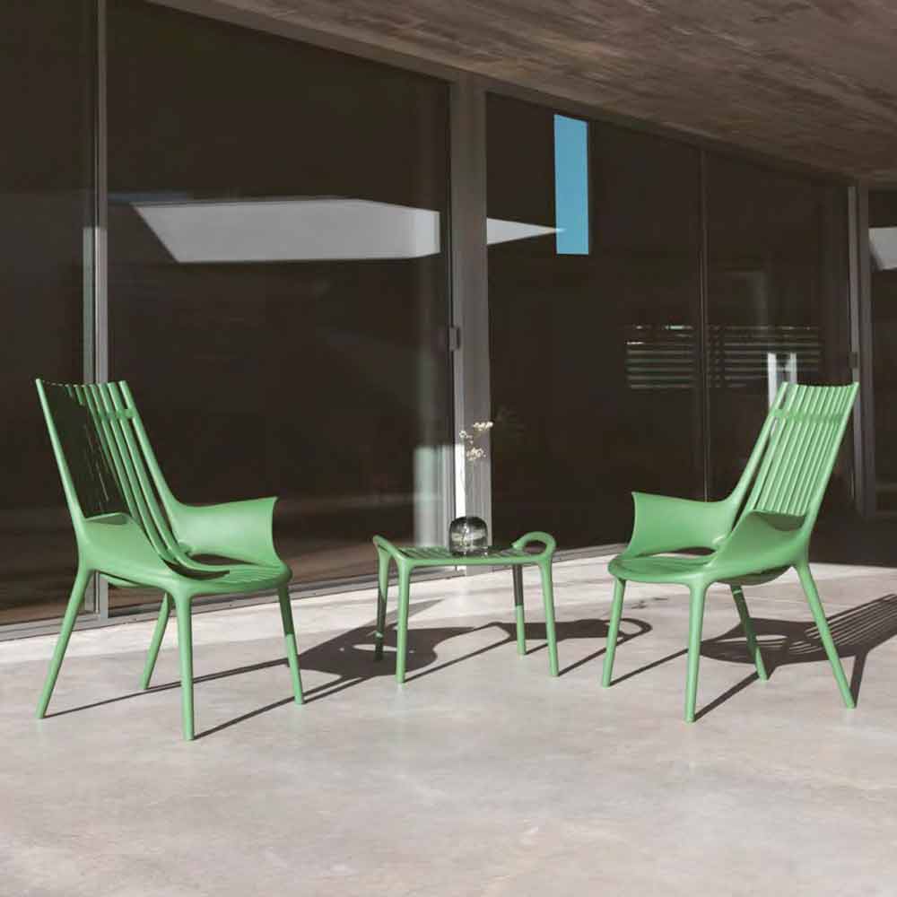 Poltrona lounge de jantar para jardim com design empilhável em polipropileno e fibra de vidro colorida, 4 peças.