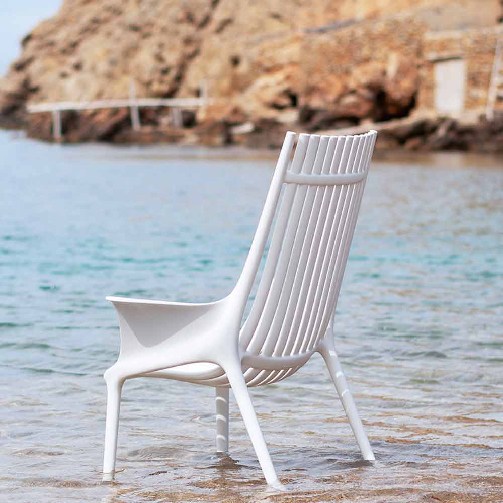 poltrona lounge ao ar livre com braços caracteriza-se por suas formas que lembram o mar e oferecem