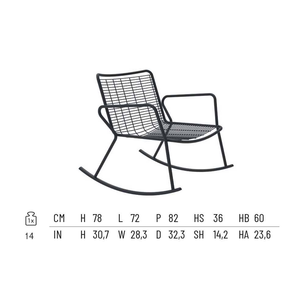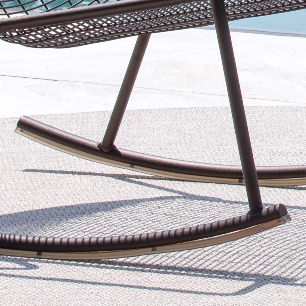 Chaise longue de balanço para área externa com braços, fabricada na Itália.